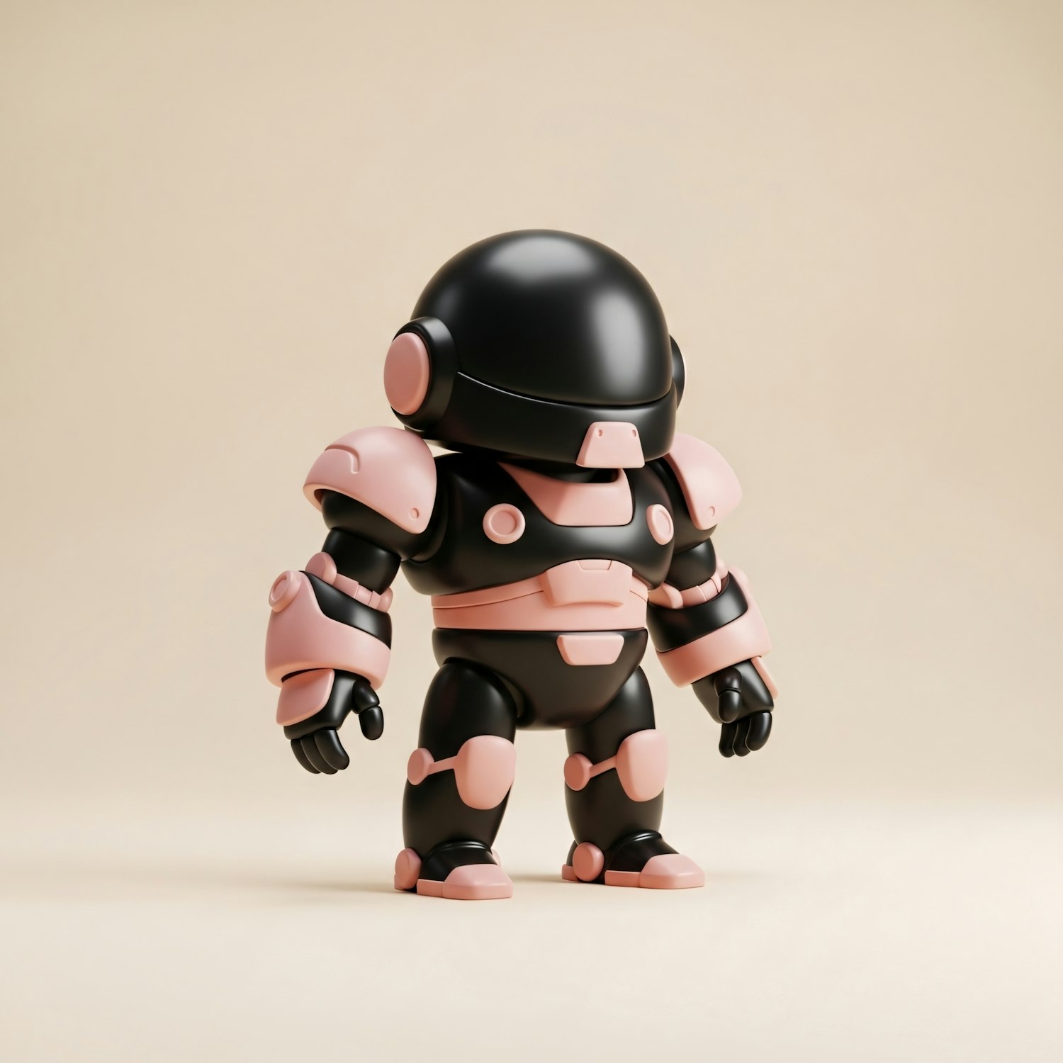 A sleek black and pink robot figure with a futuristic design, featuring smooth armor plates and a minimalistic aesthetic.