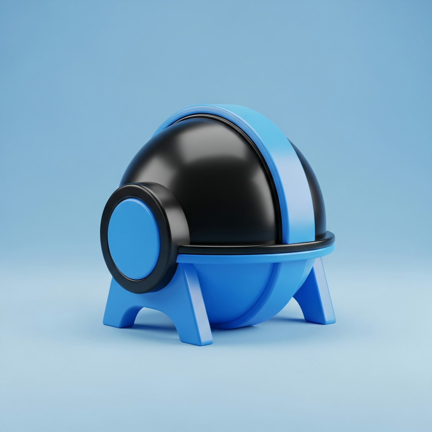 A sleek, futuristic black and blue spherical object on a light blue background, showcasing a modern and minimalistic design.