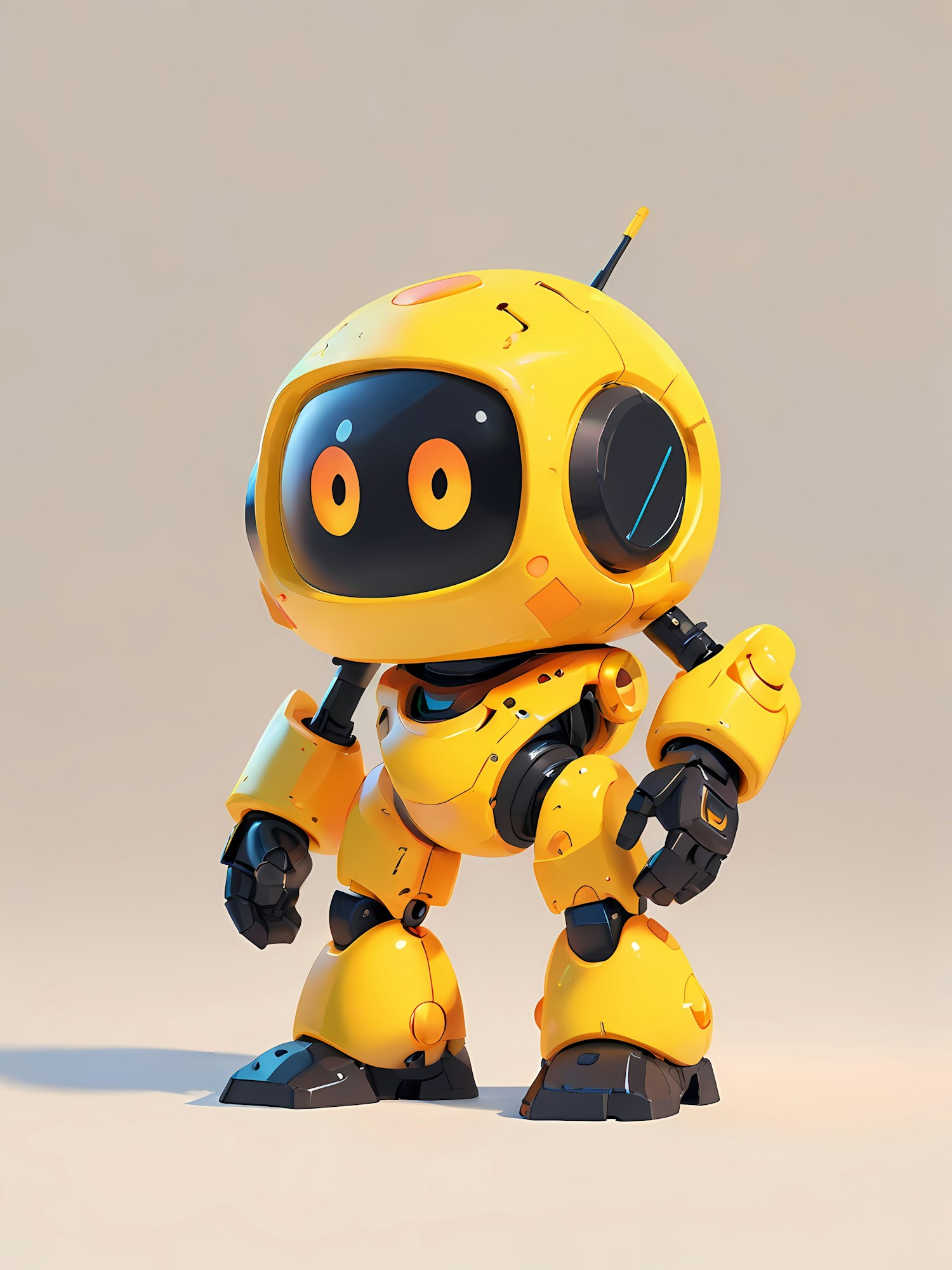 Adorable yellow robot with glowing orange eyes and a sleek, futuristic design. Perfect blend of playful and high-tech vibes.