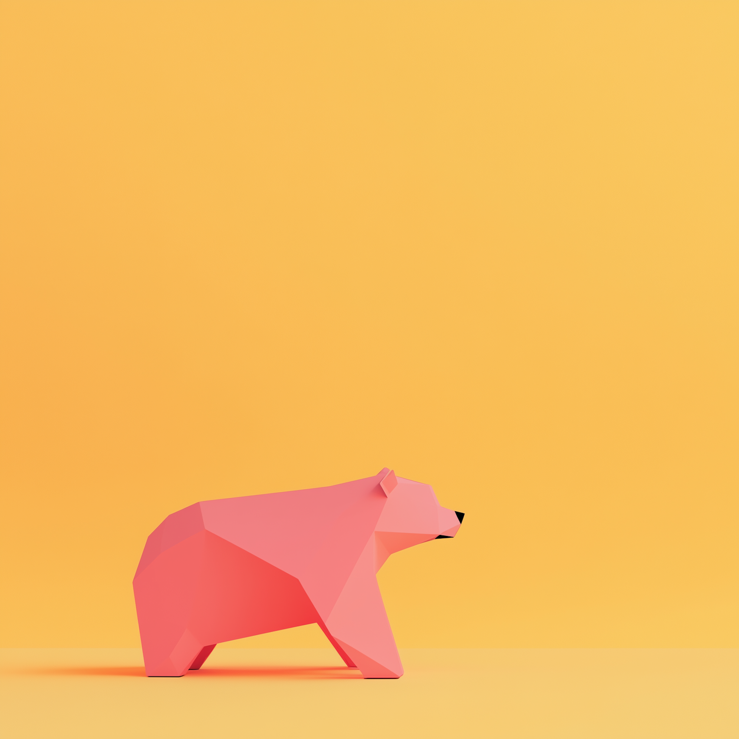 Minimalist 3D illustration of a pink geometric bear against a vibrant yellow background.
