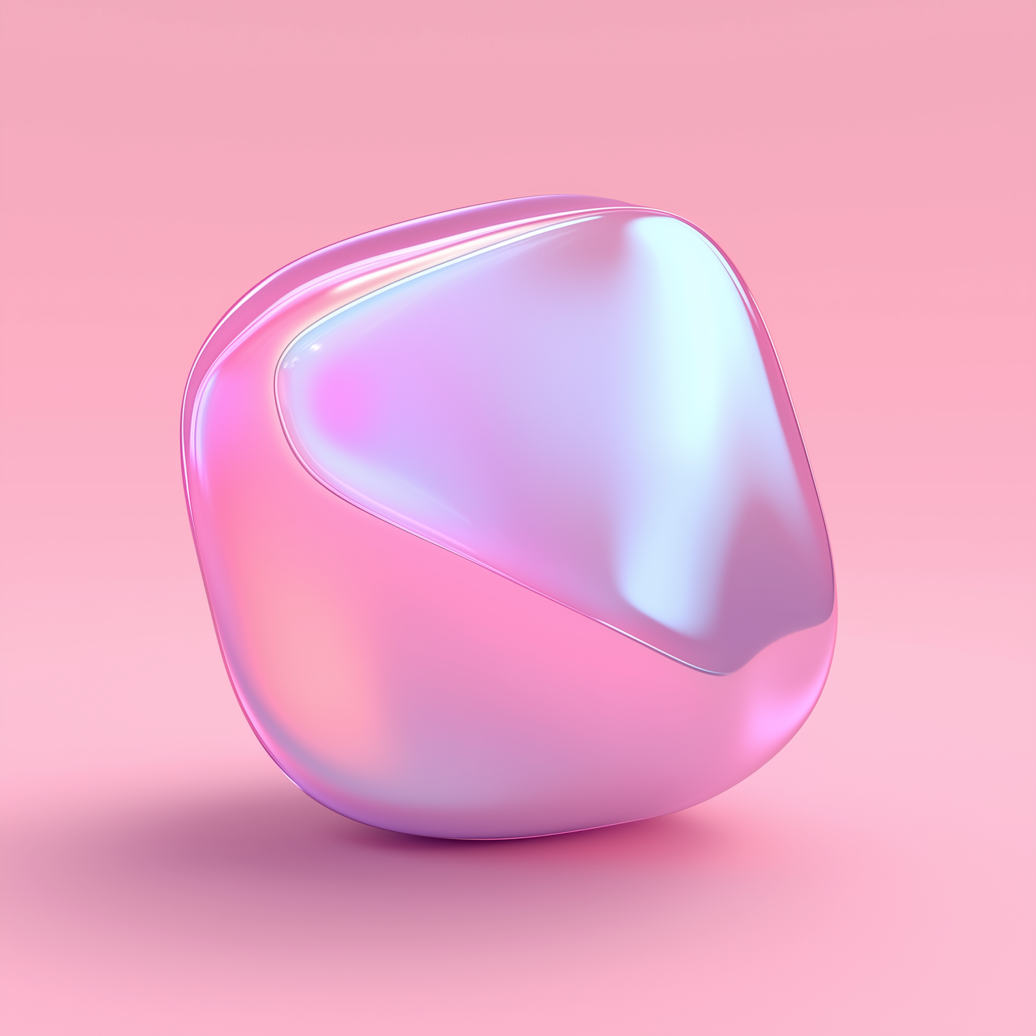 Glossy 3D abstract shape with iridescent pink, blue, and purple hues on a minimalist pink background. Modern and futuristic design.