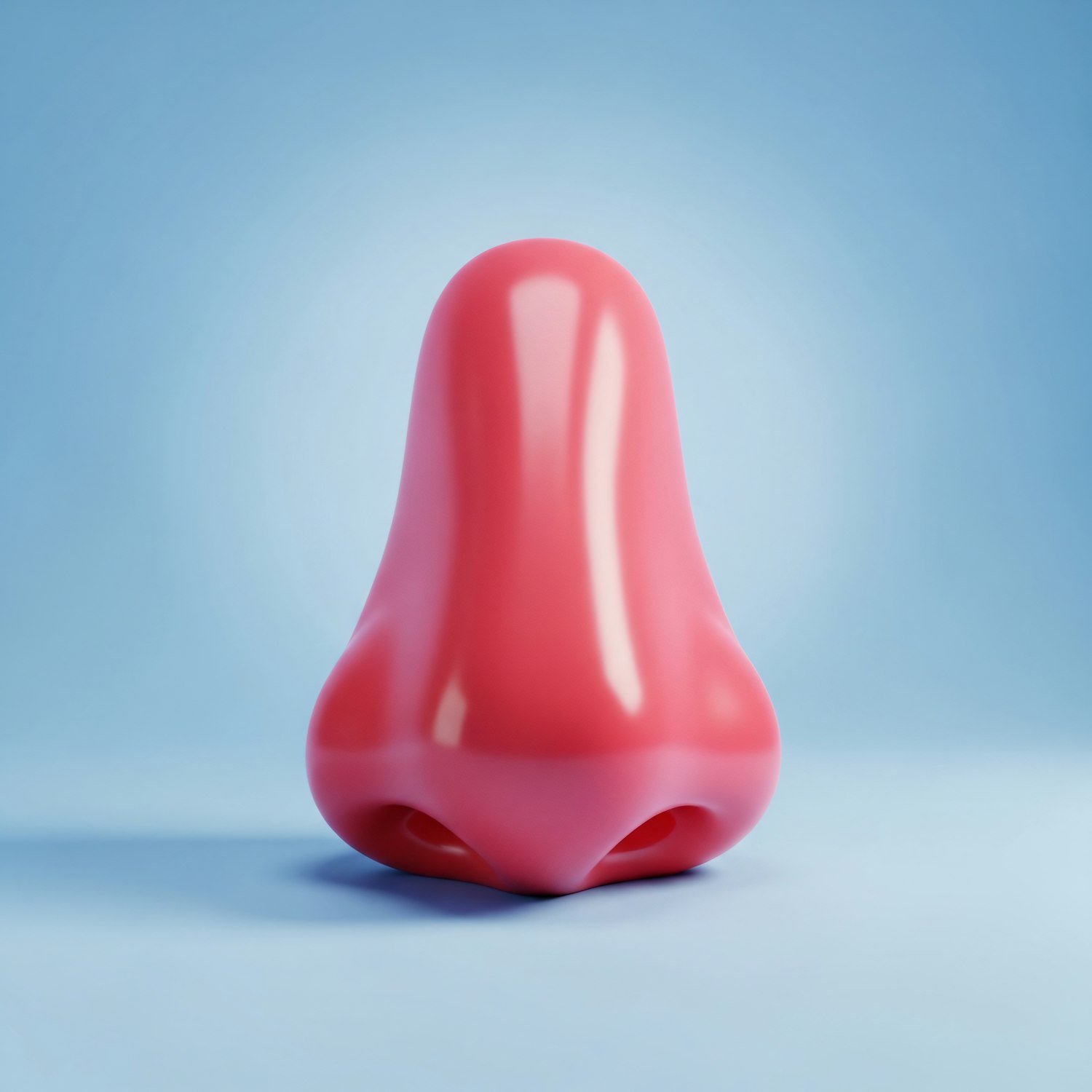 A glossy pink 3D-rendered nose on a gradient blue background, showcasing a clean and minimalistic design.