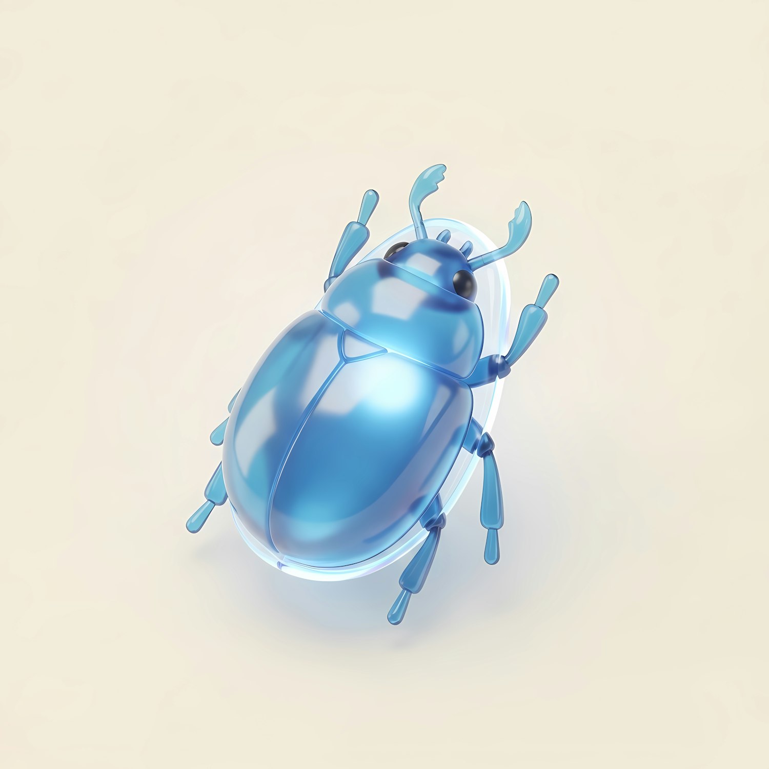 A vibrant 3D-rendered blue beetle with a glossy, translucent body on a neutral background, showcasing intricate details and a modern design.