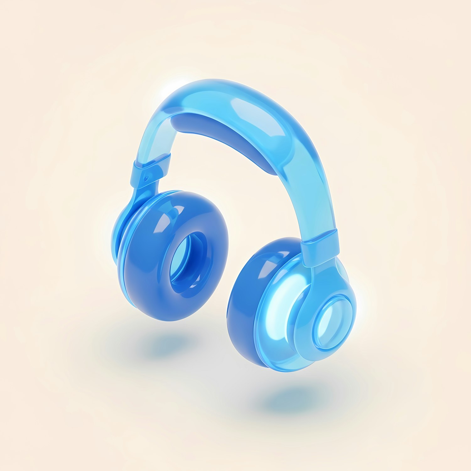 Stylish 3D-rendered translucent blue headphones on a soft beige background, showcasing a sleek and modern design.