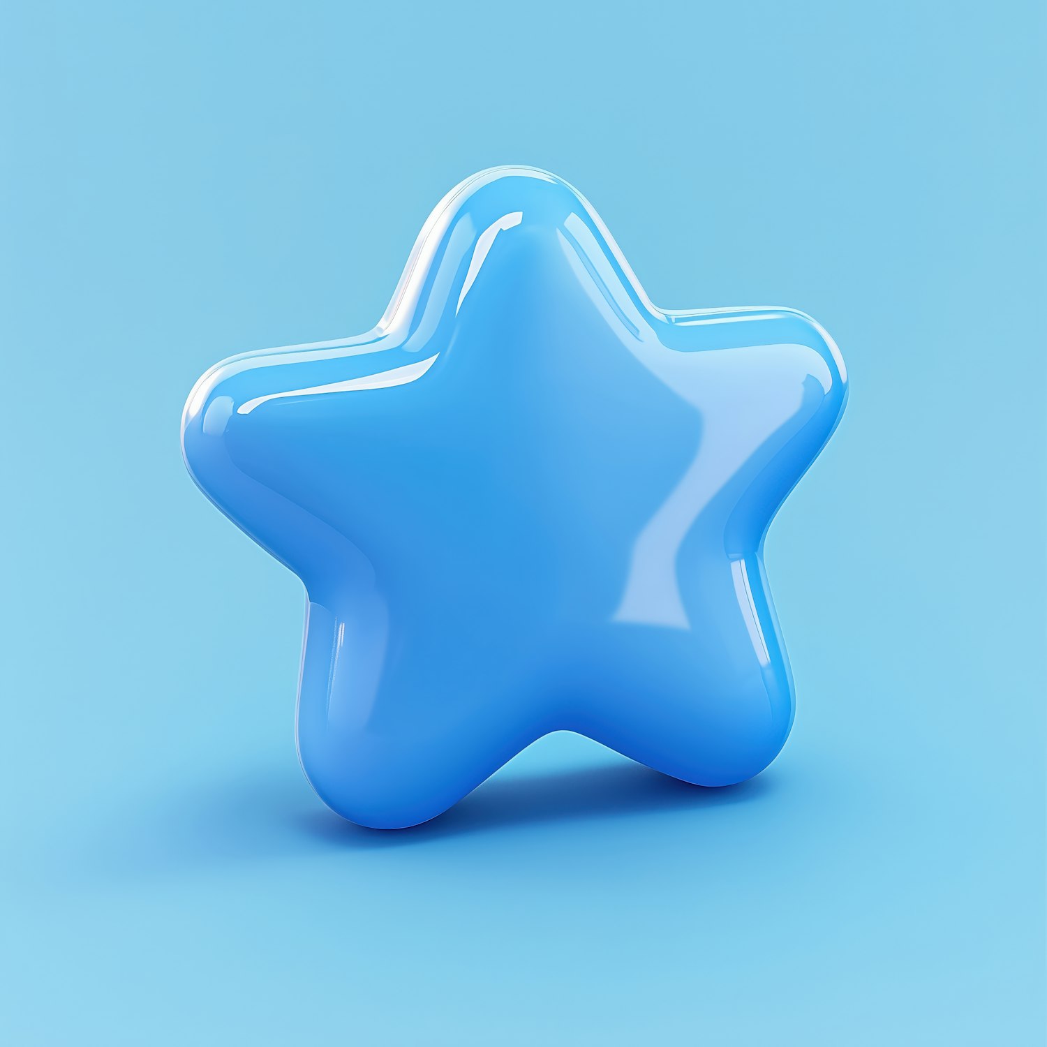 A glossy blue 3D star with rounded edges on a matching blue background, creating a clean and minimalistic design.