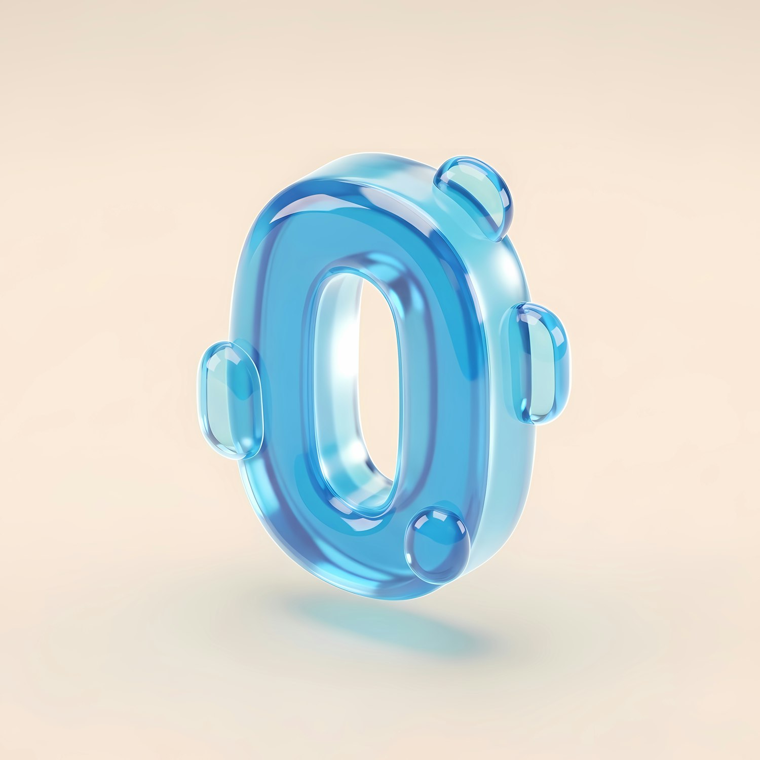 A 3D-rendered translucent blue number zero with a glossy texture, set against a soft beige background for a modern and clean look.