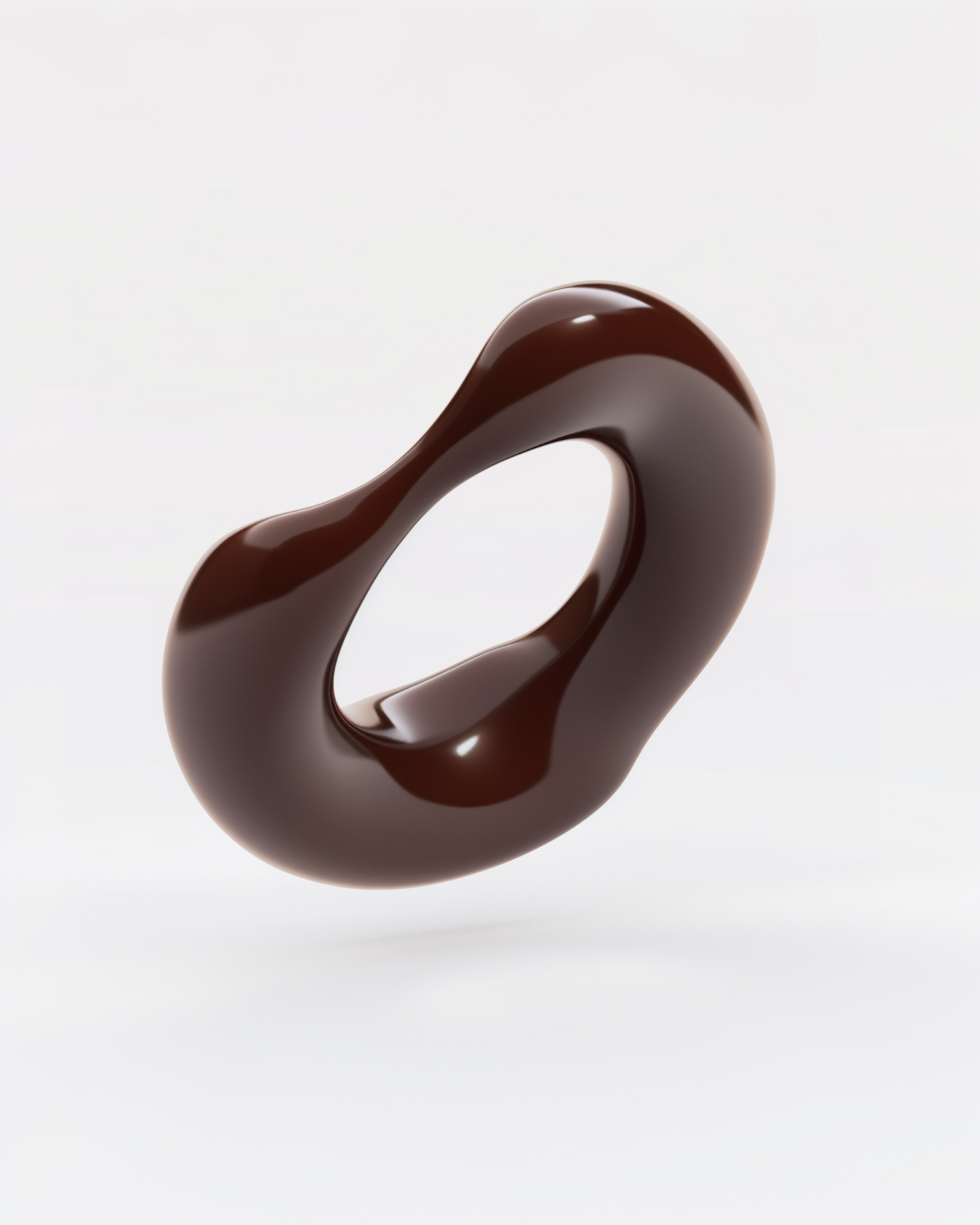 Glossy dark brown torus-like object with a polished surface, floating against a plain white background.