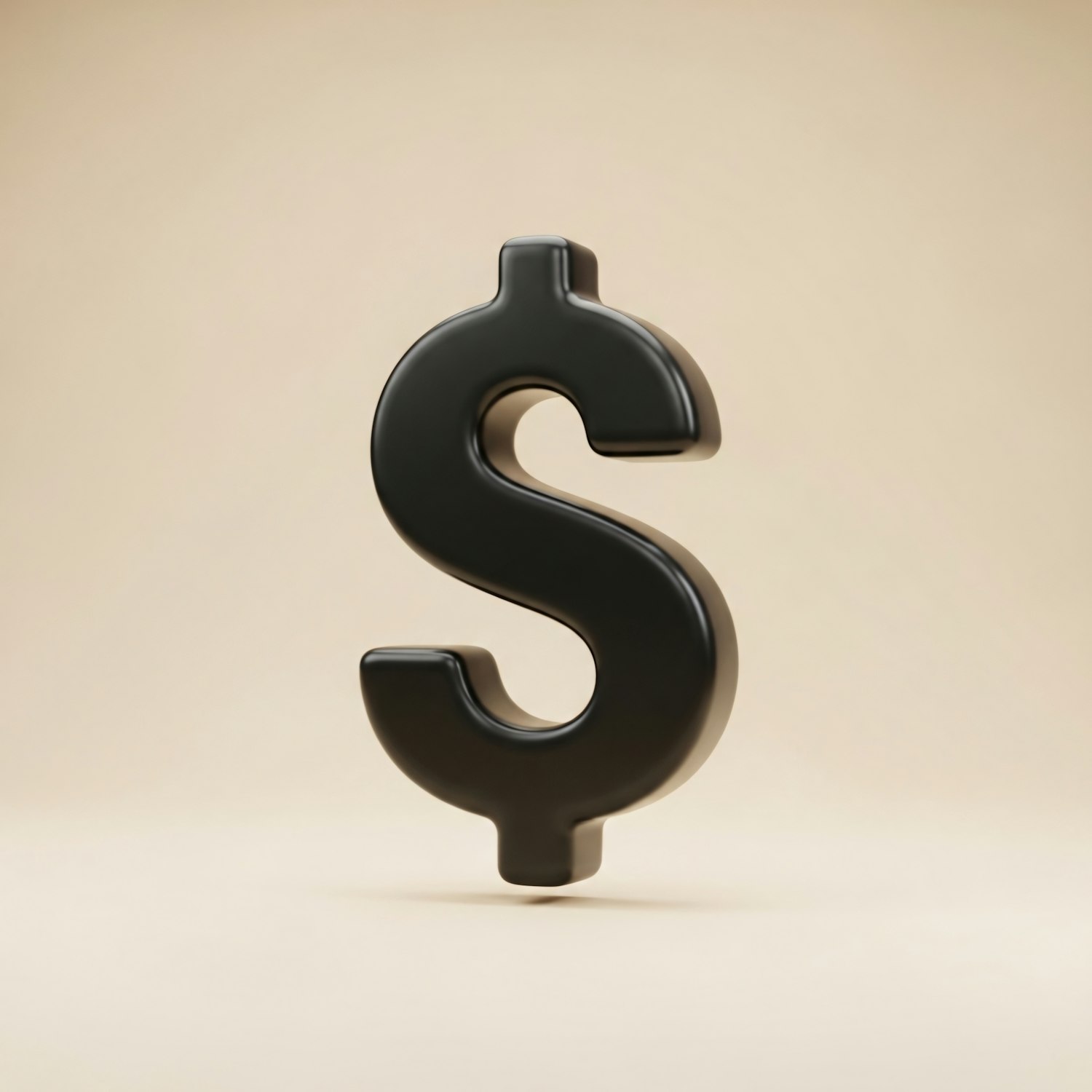 A sleek black dollar sign on a beige background, showcasing a minimalist and modern design with a focus on simplicity.