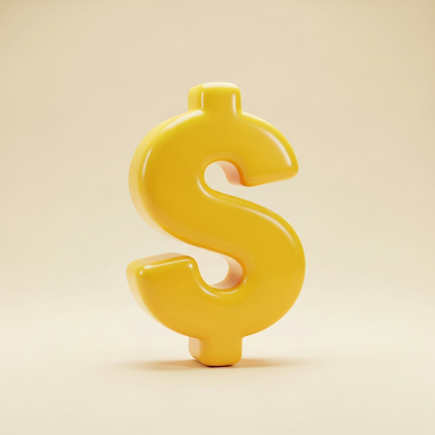 A glossy yellow dollar sign on a beige background, symbolizing finance and wealth in a clean, modern design.