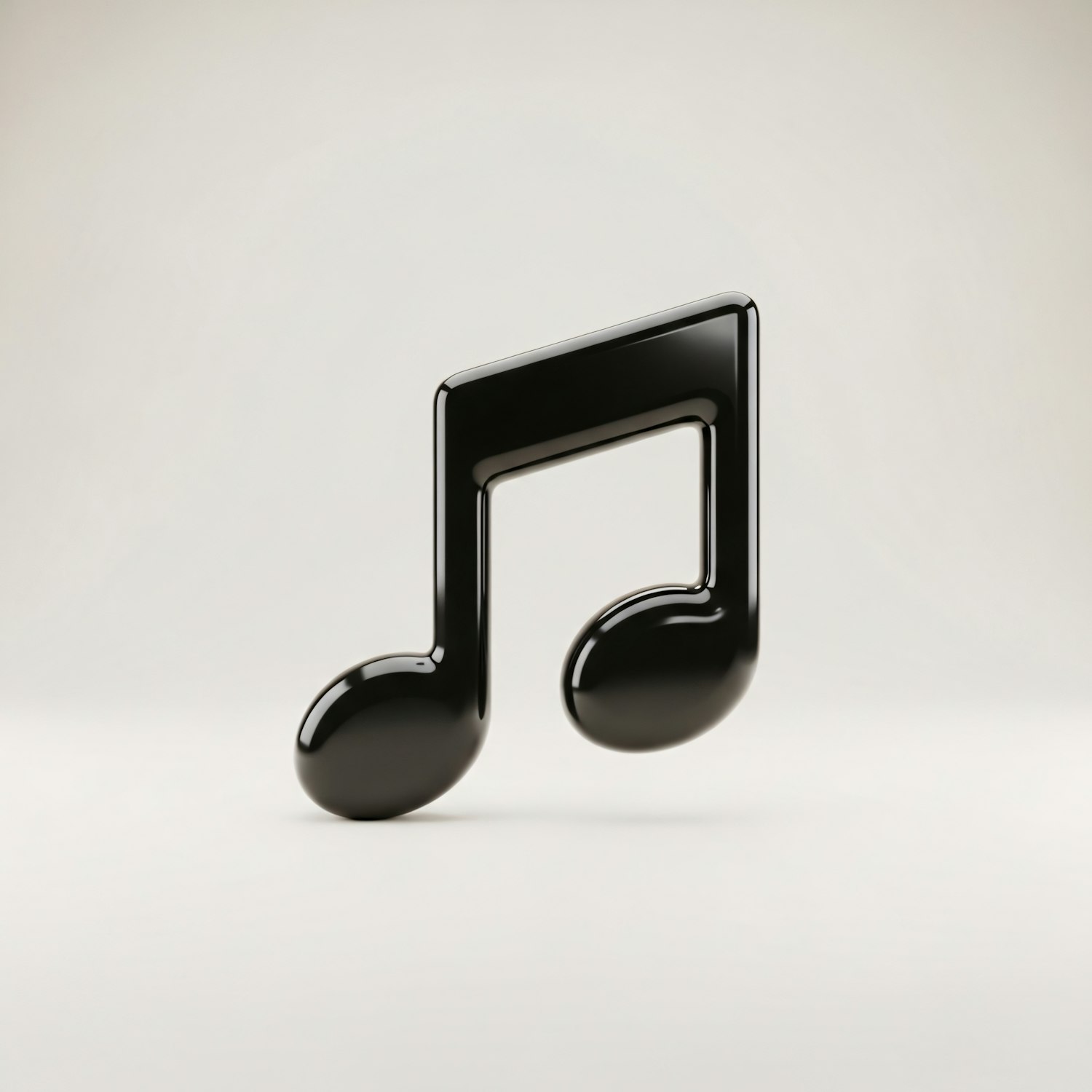 A glossy black musical note symbol on a neutral background, perfect for music-related themes or modern design concepts.