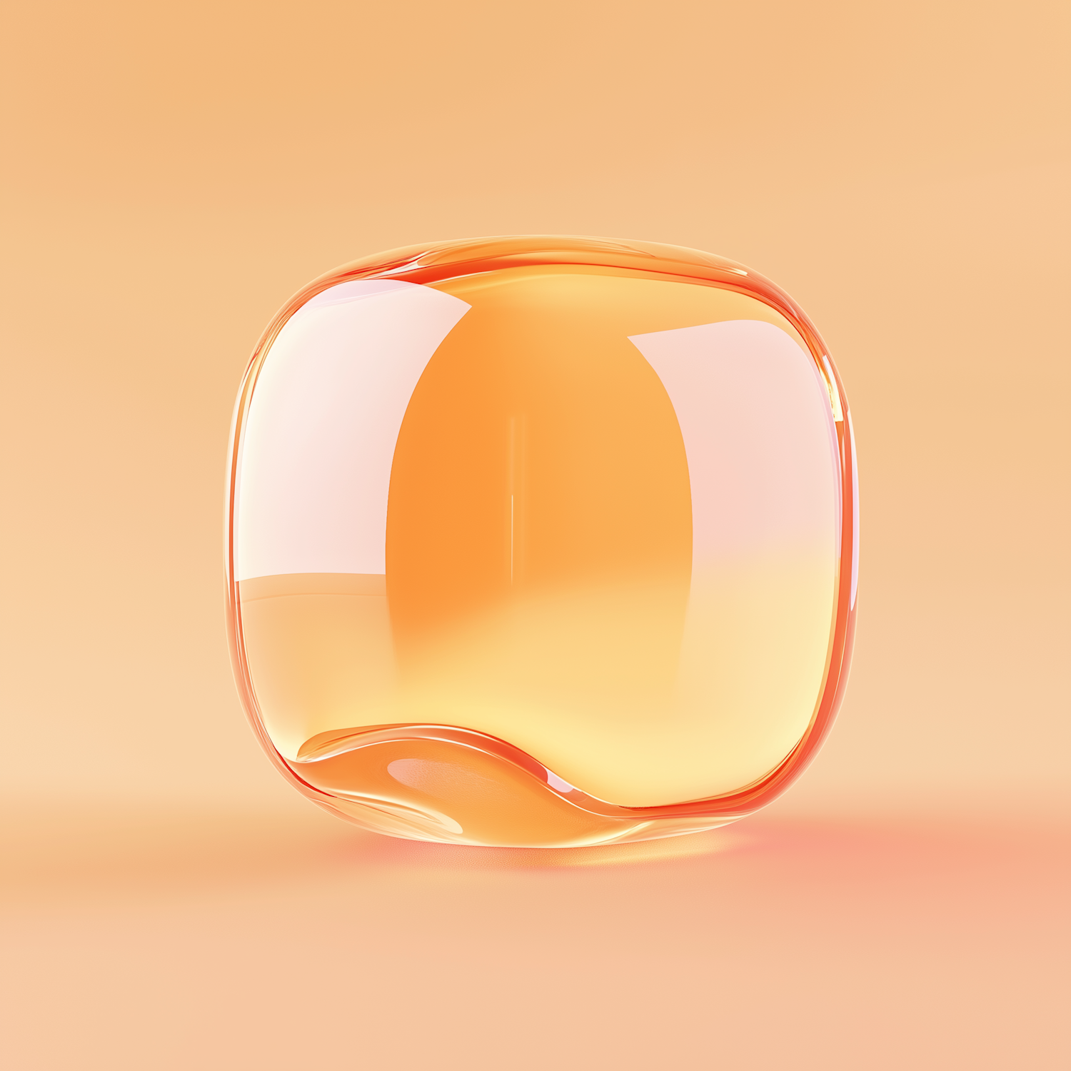 A glowing, translucent orange 3D object with smooth edges on a soft orange background, creating a modern and minimalistic aesthetic.