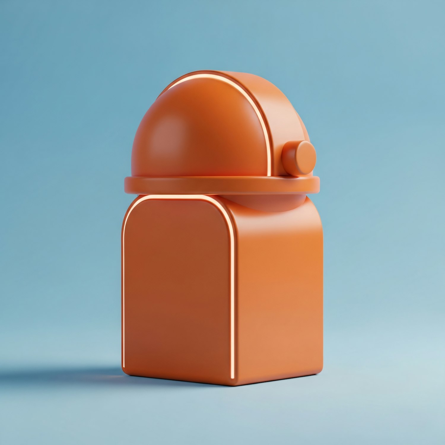 A sleek orange 3D object with a dome top, set against a light blue background, showcasing modern design and smooth textures.