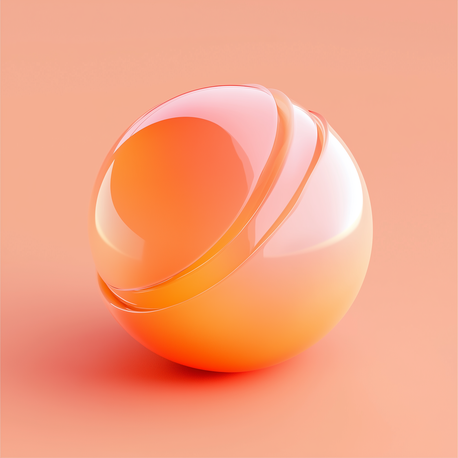 Glossy orange sphere with a gradient and groove design on a soft peach background, creating a modern and minimalist aesthetic.
