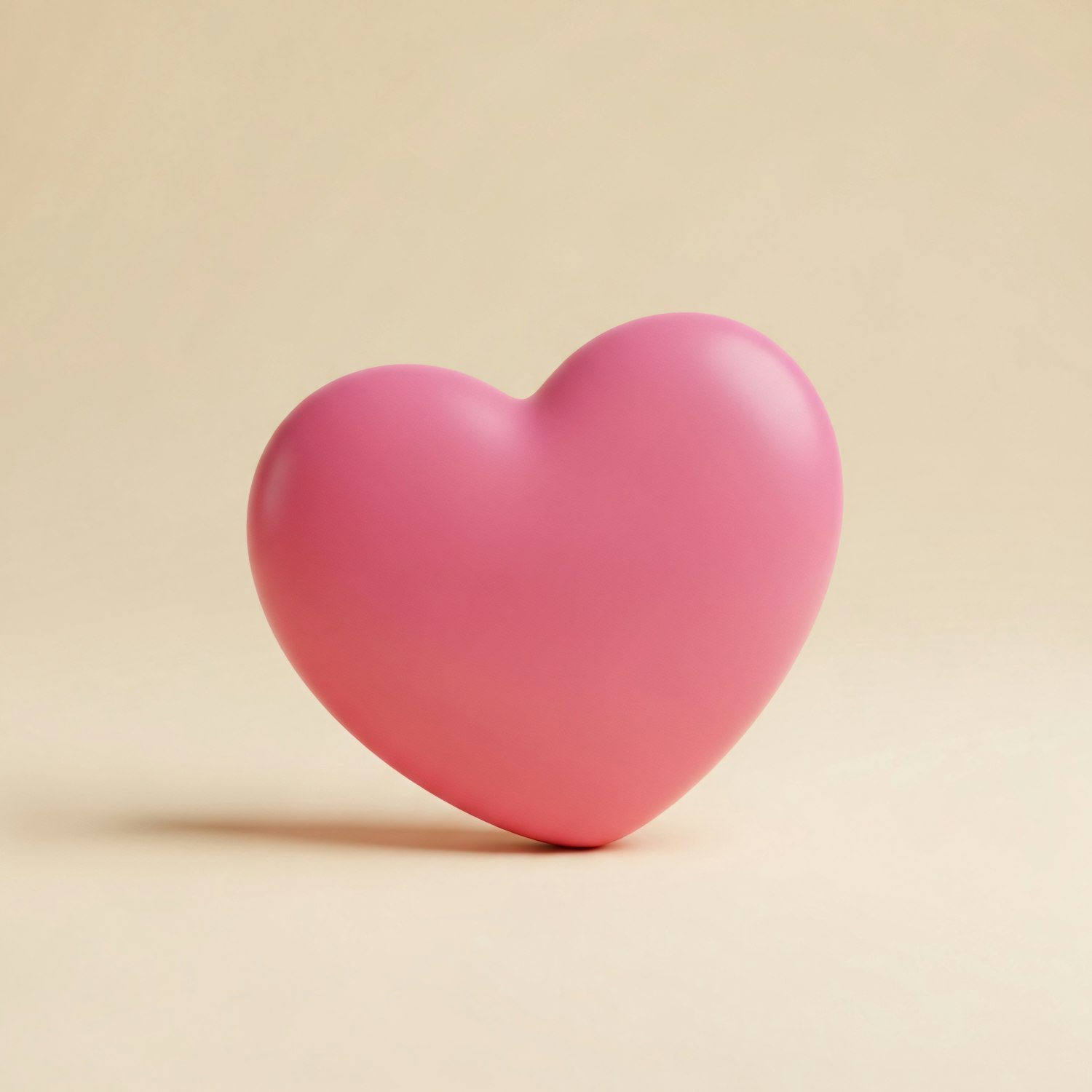 A glossy pink heart against a beige background, showcasing a minimalistic and clean design with soft lighting and subtle shadows.