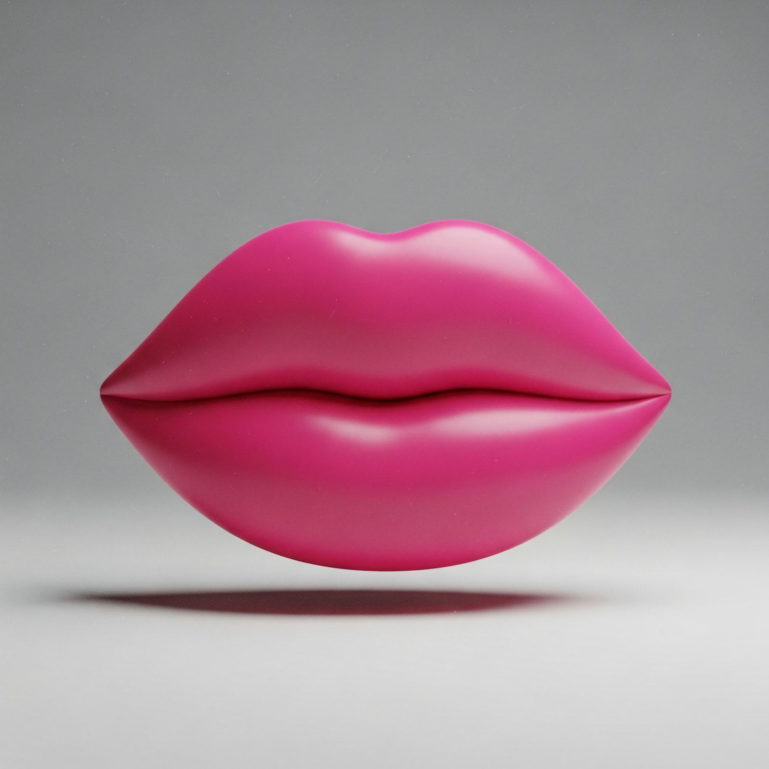 A vibrant pink 3D rendering of lips with a glossy finish, floating against a neutral gray background, creating a bold and artistic visual.