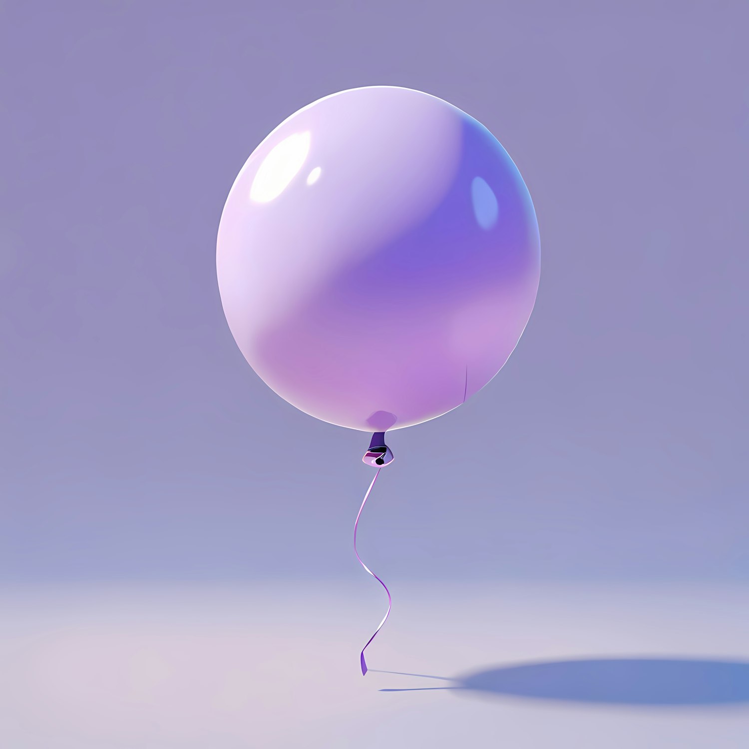 Glossy purple balloon with a curling ribbon against a soft gradient background, creating a simple and elegant scene.