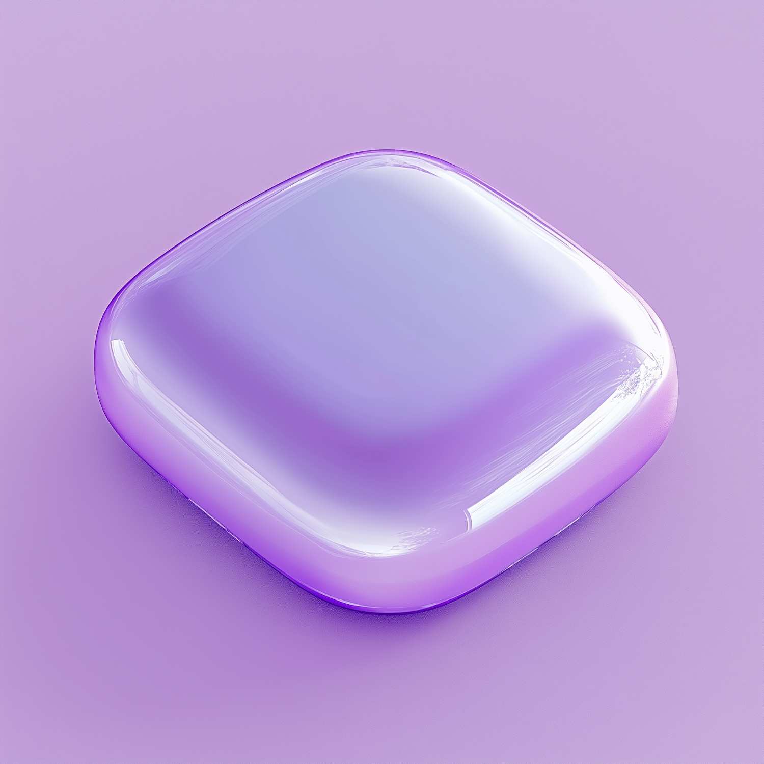 Glossy, translucent purple square object with rounded edges on a matching purple background, exuding a sleek and modern vibe.