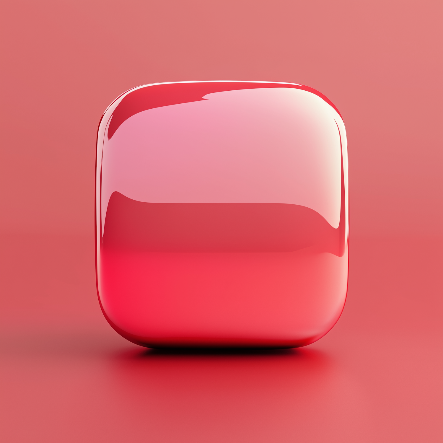 Glossy red rounded cube with a smooth gradient finish on a matching red background, showcasing a sleek and modern design.