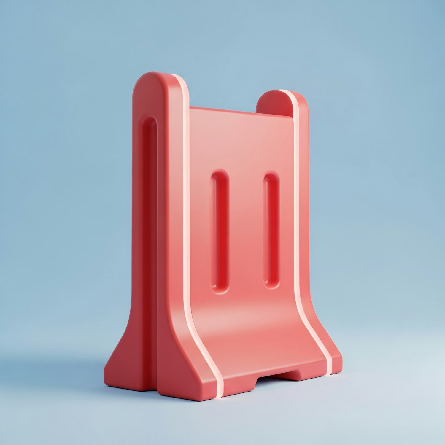 A sleek red object with a modern design stands against a light blue background, showcasing its smooth surface and minimalist style.