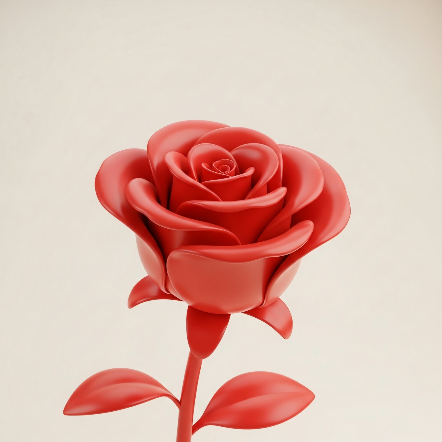 A stunning 3D-rendered red rose with smooth petals and a simple stem, perfect for romantic or artistic themes.