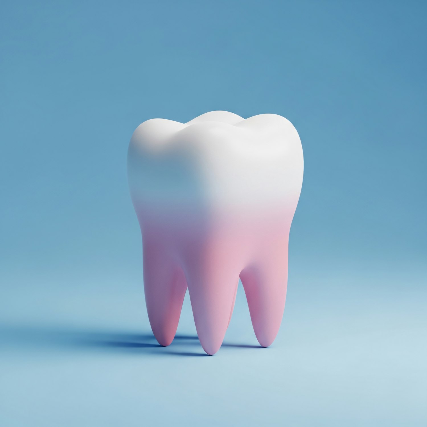 A 3D-rendered tooth with a white-to-pink gradient on a light blue background, perfect for dental or health-related visuals.