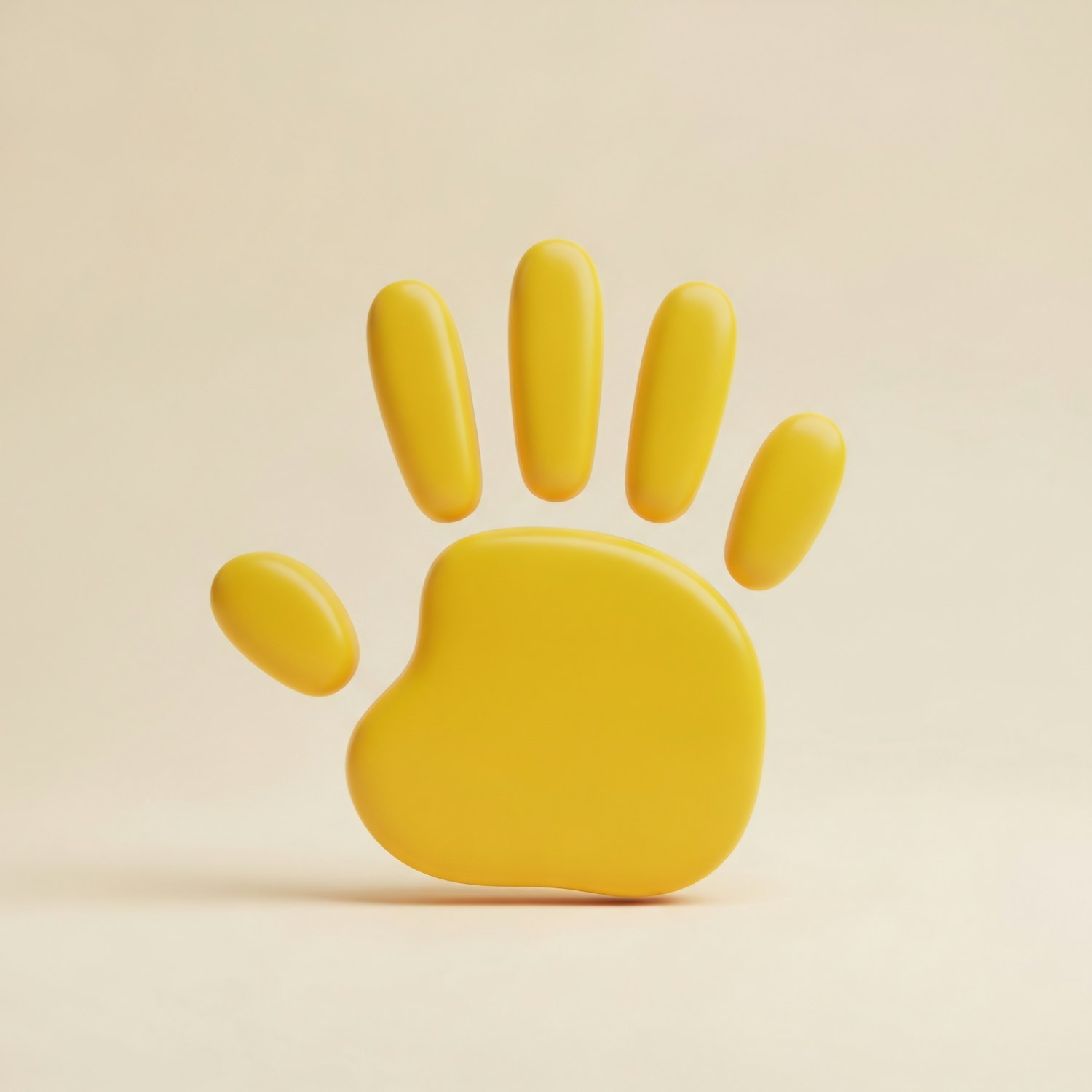 A glossy yellow handprint design on a soft beige background, showcasing a modern and playful aesthetic.