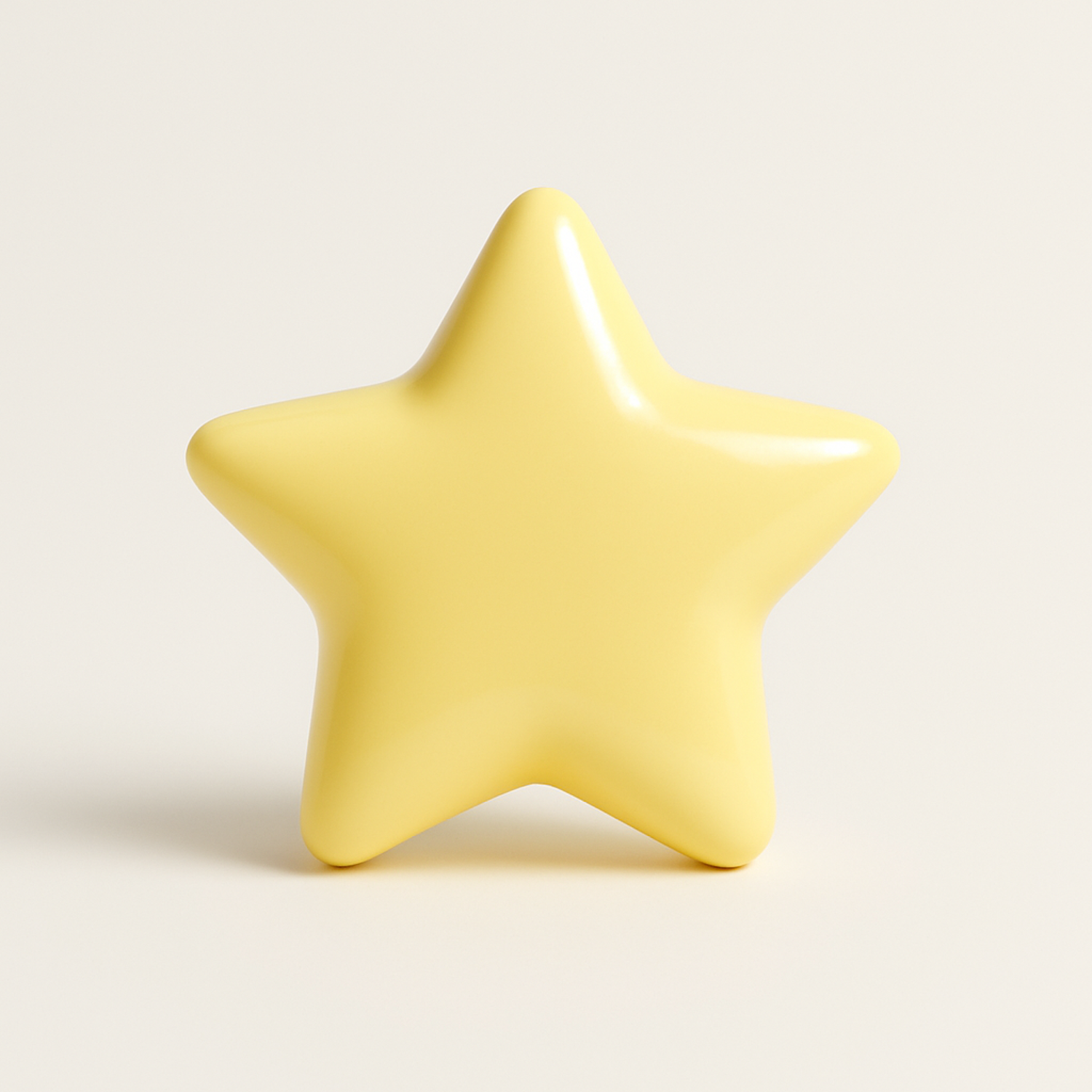 A glossy yellow star with a smooth, rounded design on a neutral beige background, perfect for minimalist and modern aesthetics.