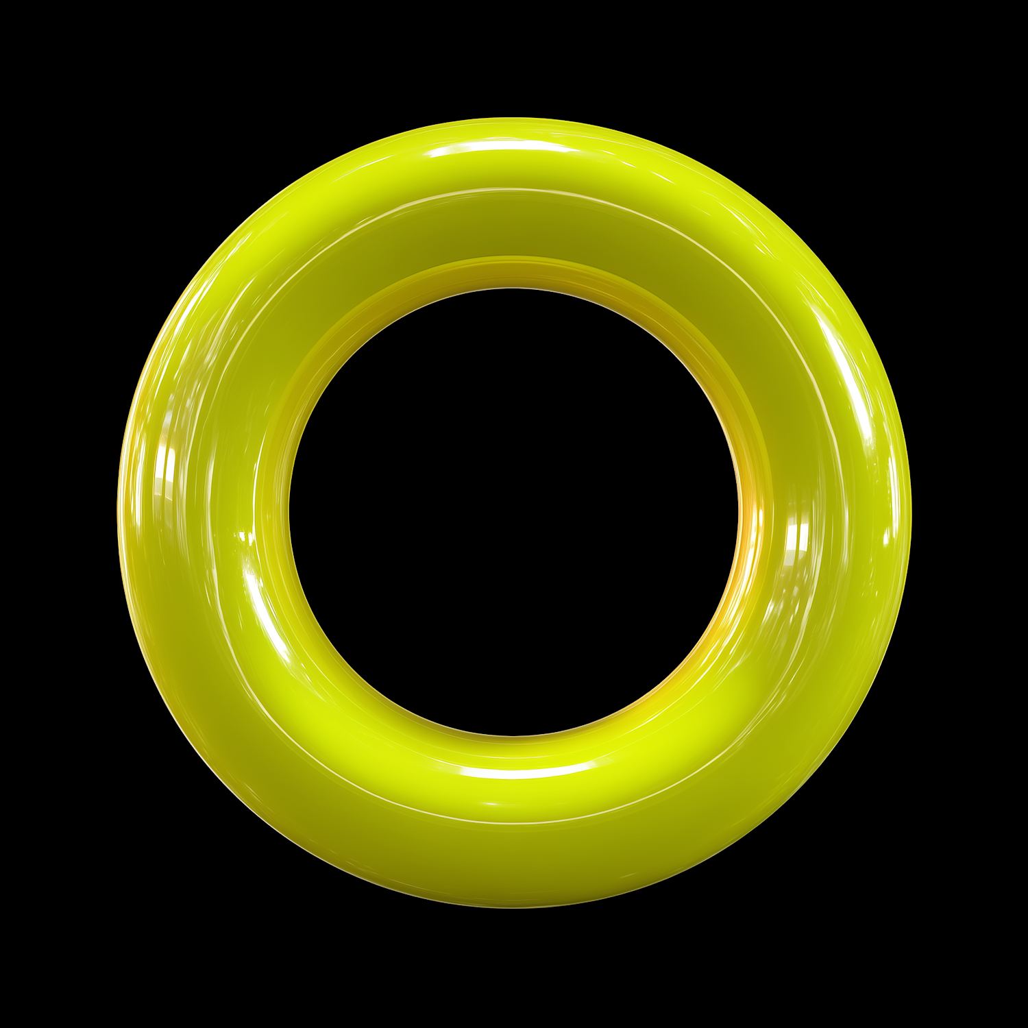 A glossy yellow torus on a black background, showcasing a sleek and modern design with reflective highlights.