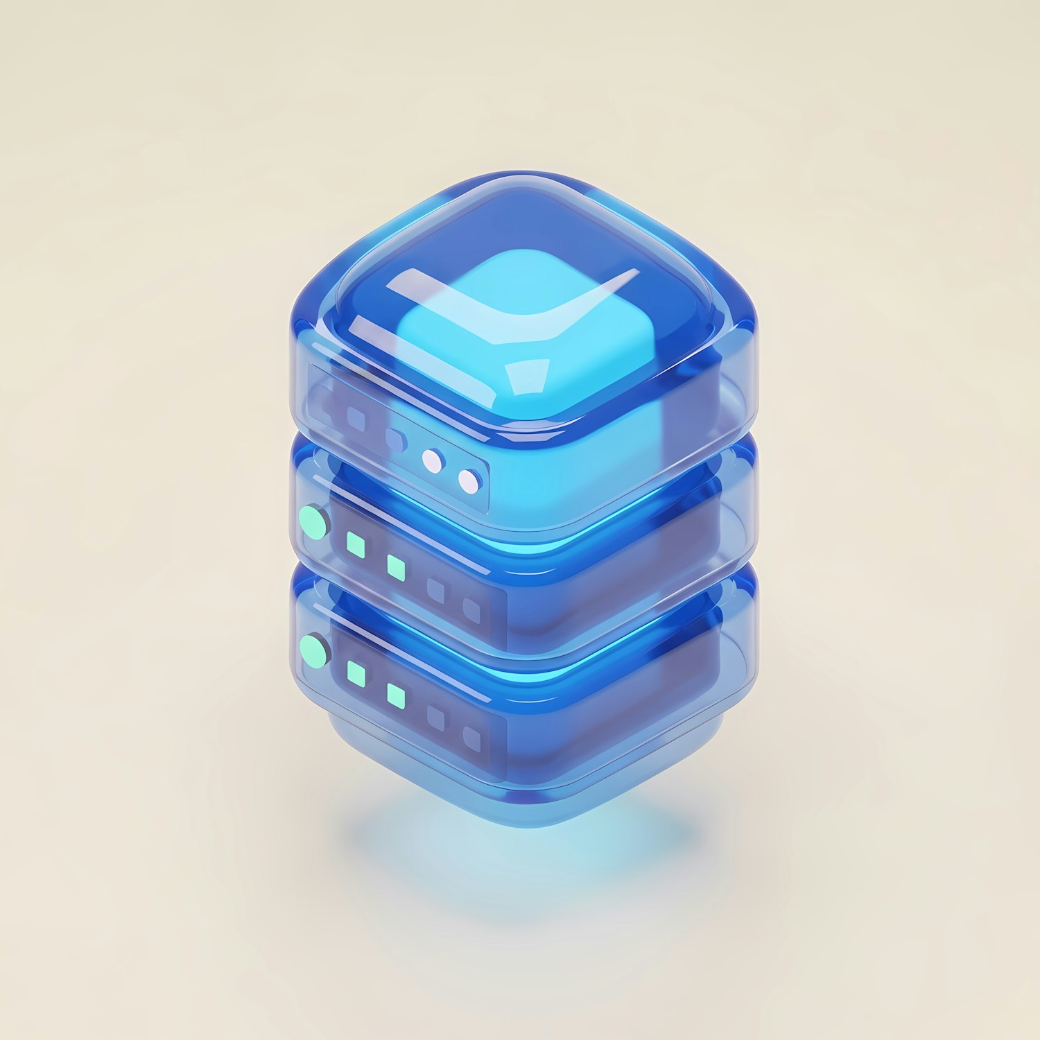3D illustration of glowing blue server-like objects stacked together, perfect for tech or data-related concepts.