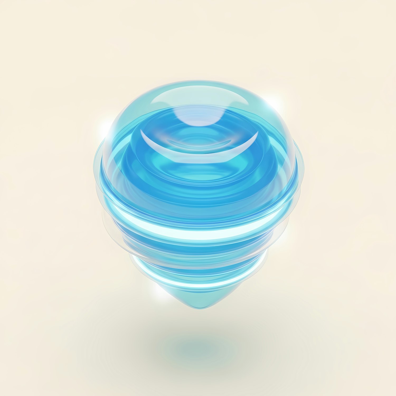 A glowing blue translucent 3D object with layered rings, set against a soft beige background, creating a minimalistic and futuristic vibe.