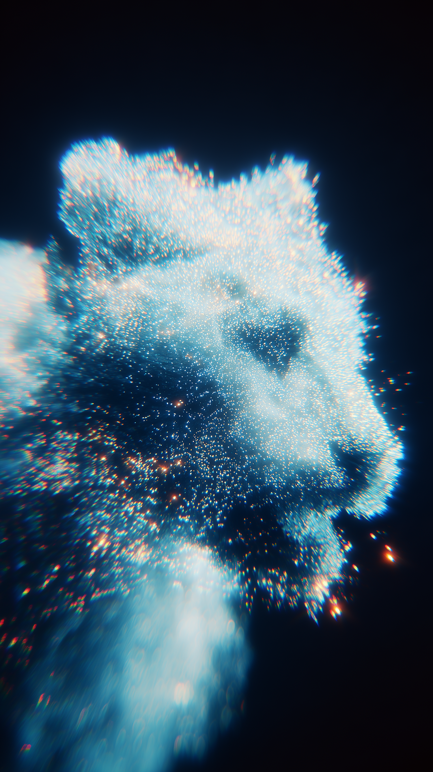 A stunning digital artwork of a lion's head formed by glowing particles, set against a dark background for a vibrant and dynamic effect.