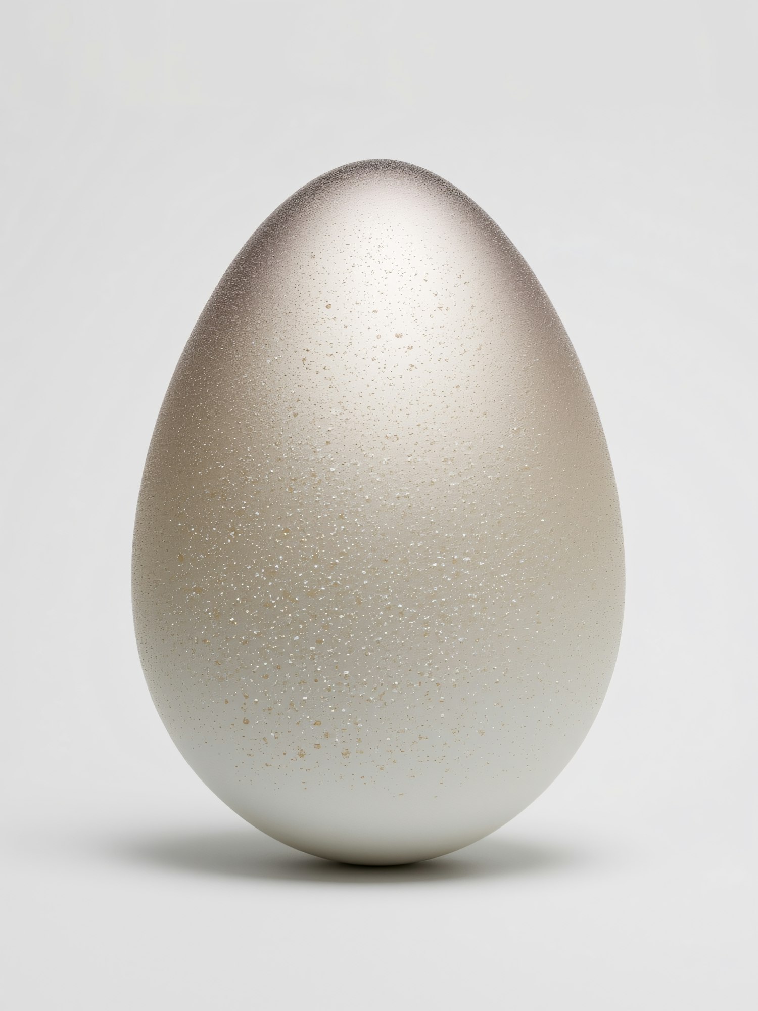A metallic gradient egg with shimmering speckles on a light gray background, showcasing a smooth and elegant design.