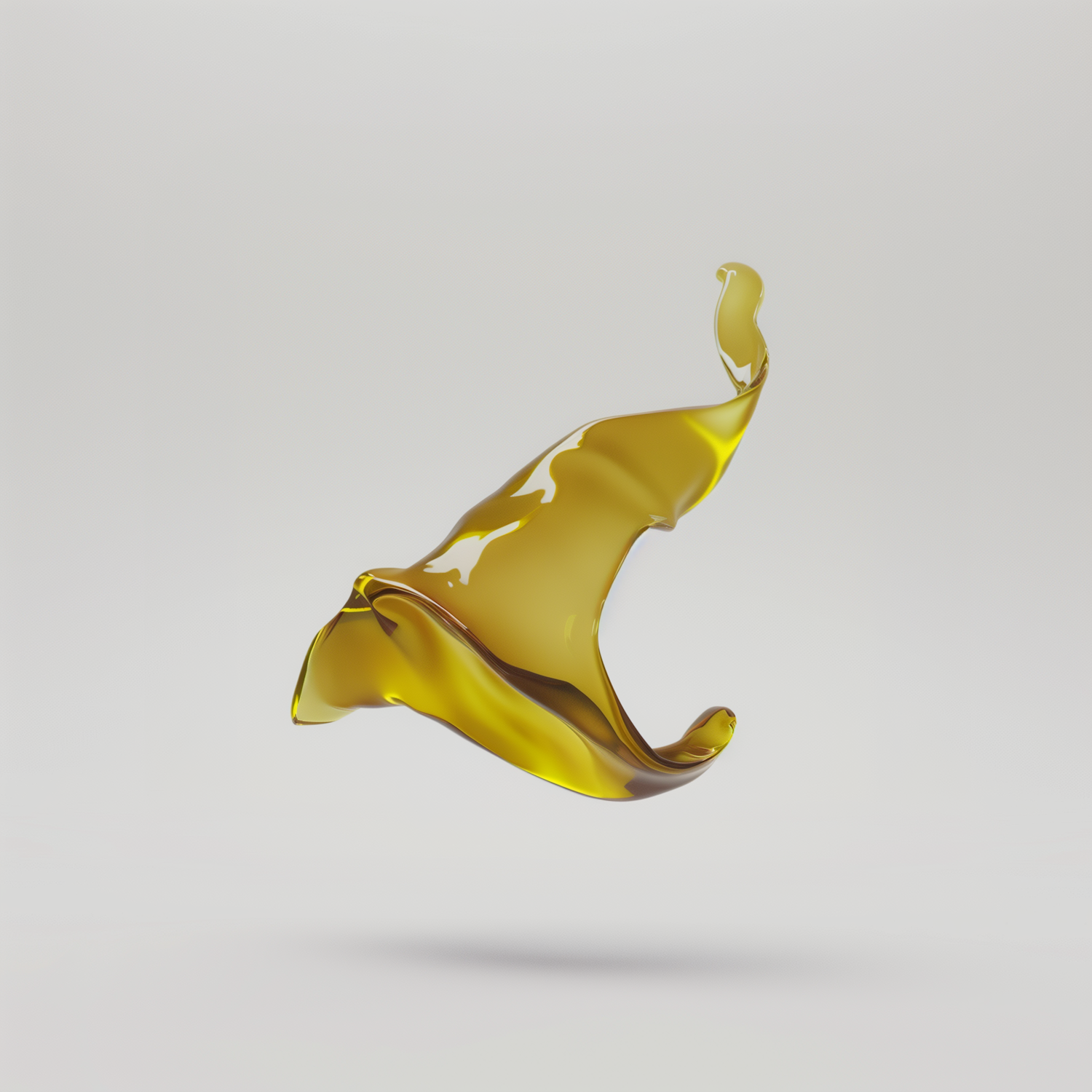 Golden liquid splash captured mid-air, forming an abstract shape against a neutral background. Elegant and dynamic visual effect.