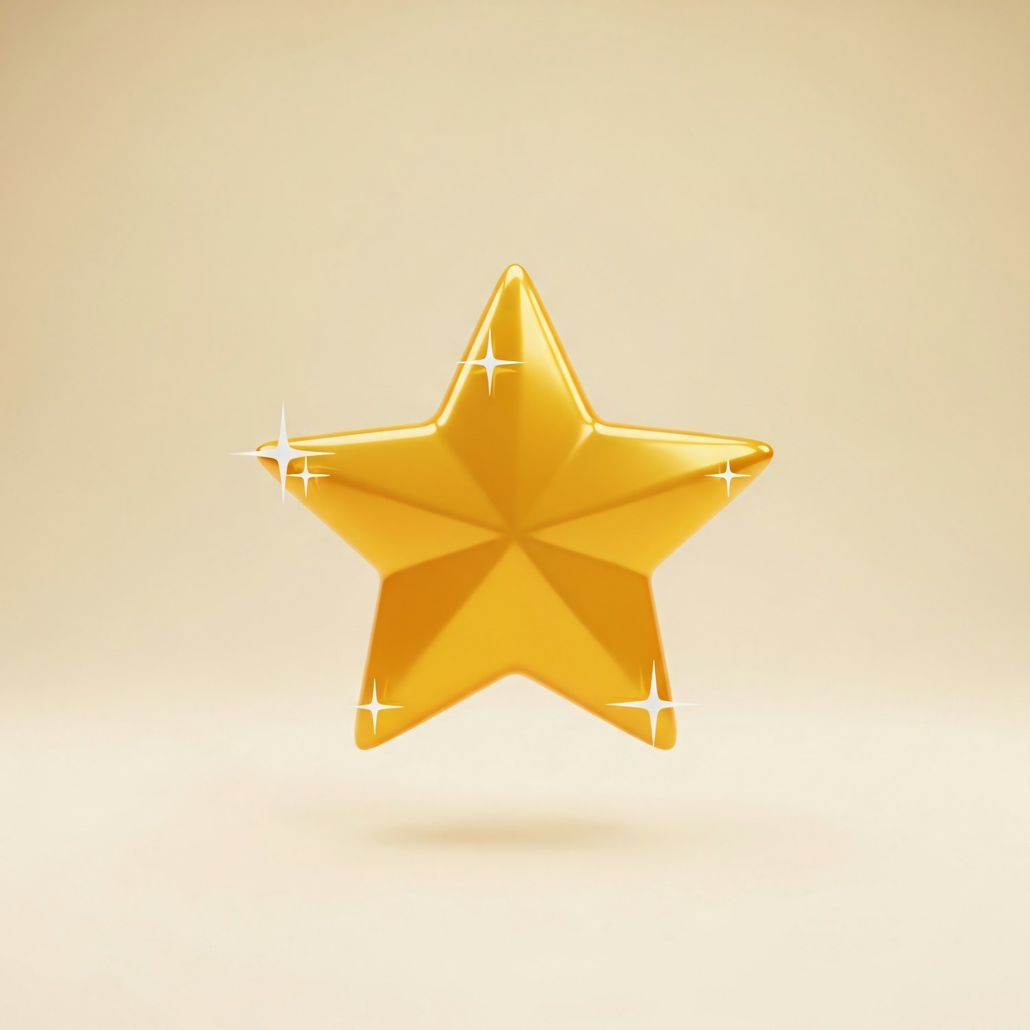 A shiny golden star with sparkles on a soft beige background, perfect for themes of achievement, celebration, or recognition.