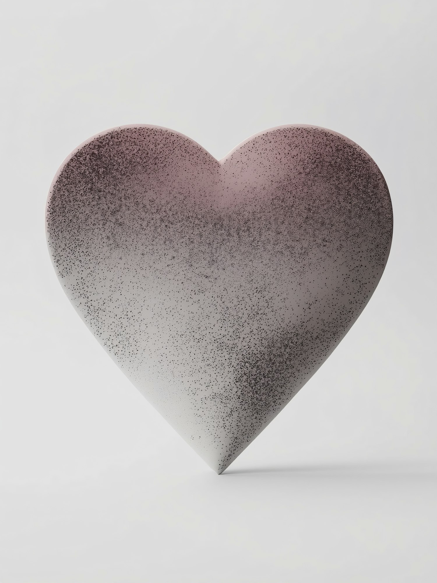 A heart-shaped object with a pink-to-white gradient and speckled texture, set against a plain white background.