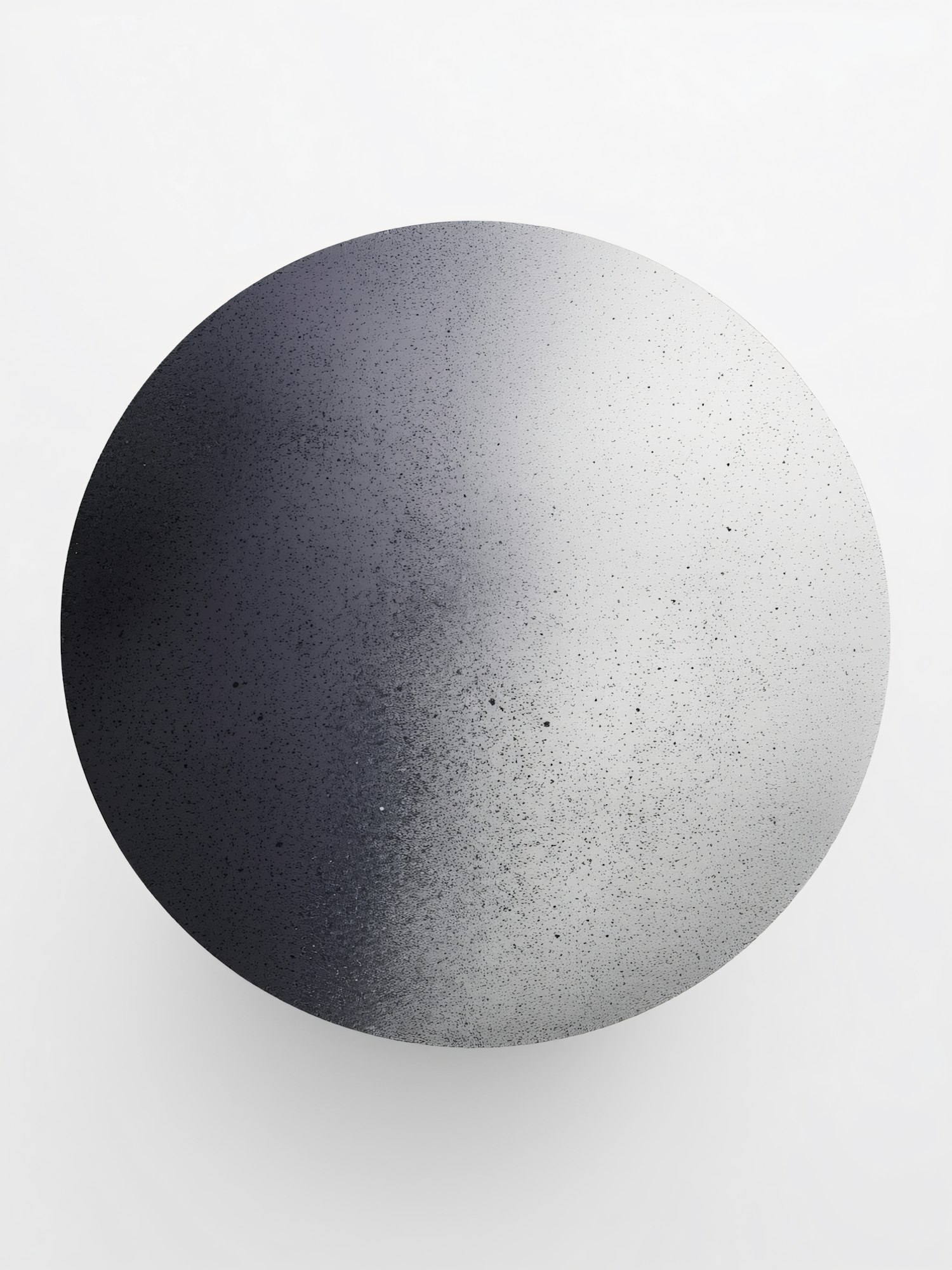 A circular gradient object with speckled texture on a white background, showcasing a minimalist and abstract design.