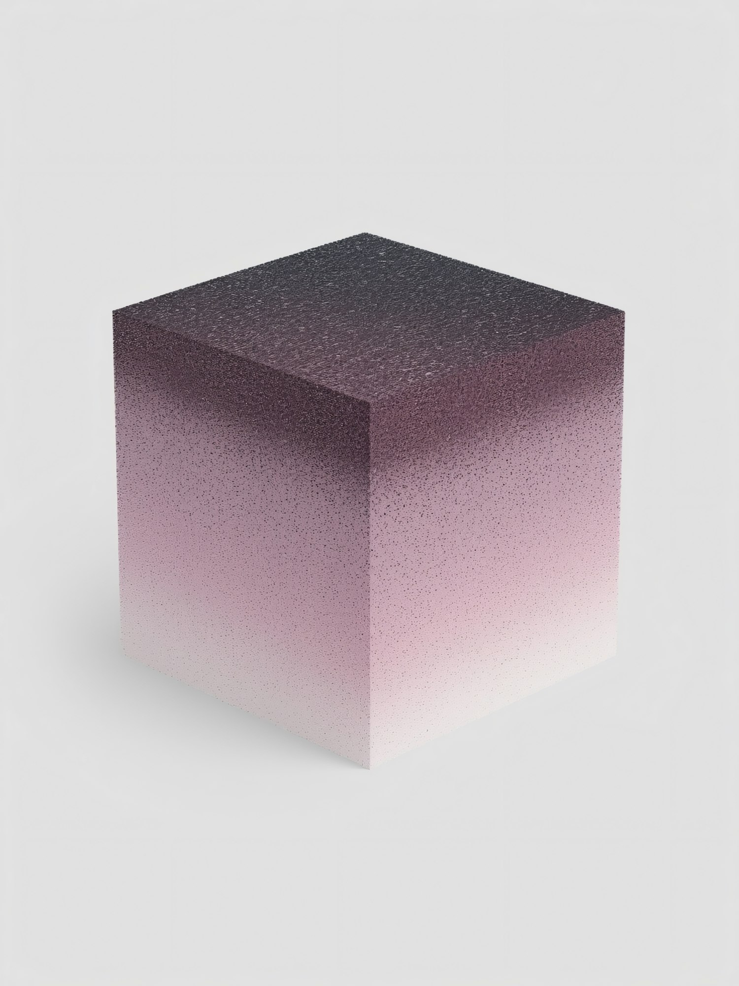 A textured cube with a gradient from dark to light pink on a white background, showcasing a minimalist and modern design.
