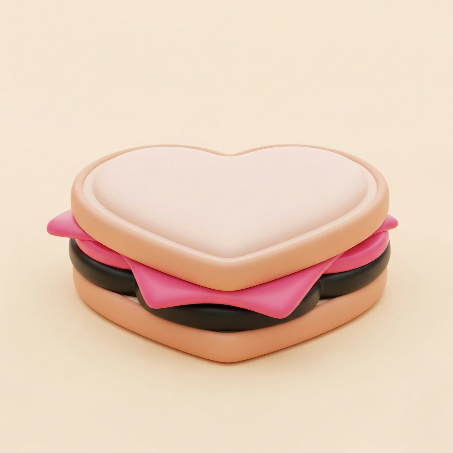 A heart-shaped sandwich illustration with pink and black layers, set against a soft beige background, perfect for creative design themes.