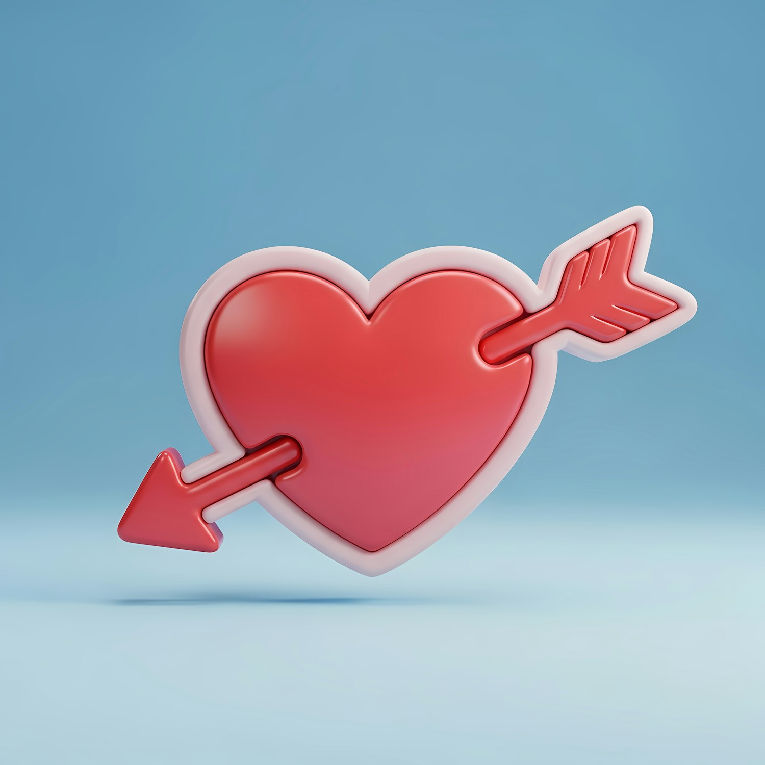 A vibrant 3D heart pierced by an arrow on a light blue background, perfect for love or Valentine's Day themes.
