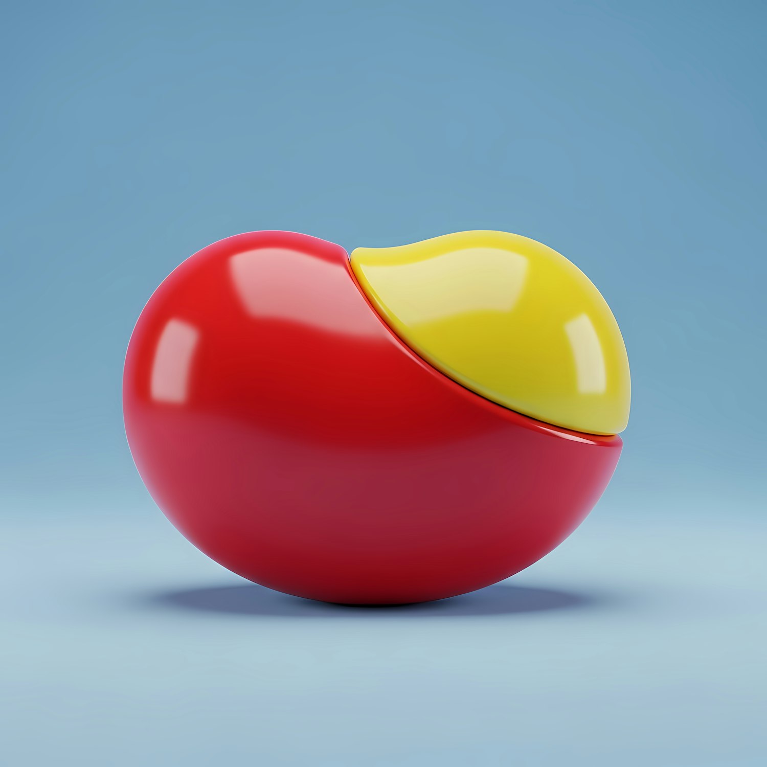 Glossy red and yellow interlocking shapes on a blue background, creating a modern and abstract 3D design.