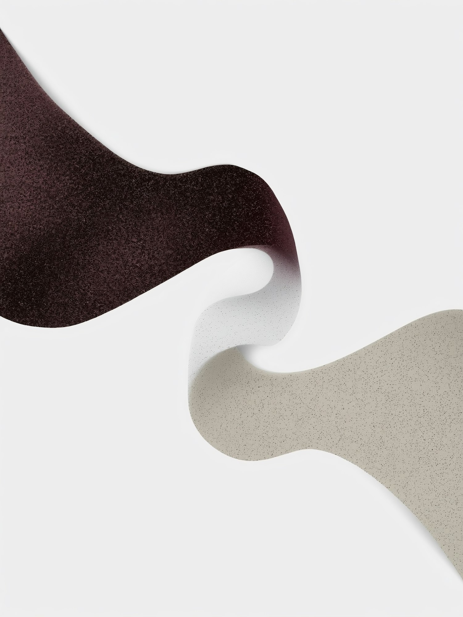 Abstract design with intertwining maroon and beige textured ribbons on a white background, creating a dynamic and modern visual.
