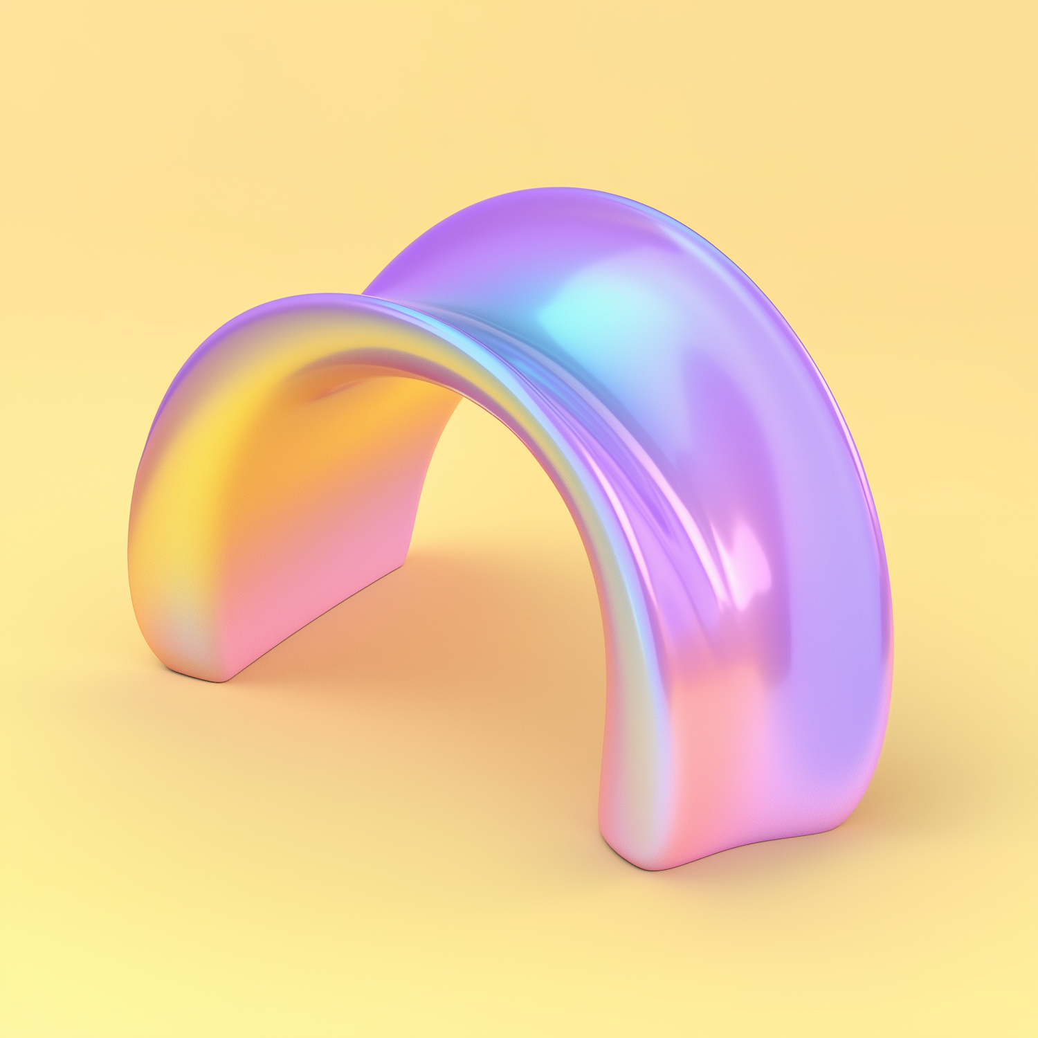 Glossy 3D arch with pastel iridescent hues on a pale yellow background, blending modern minimalism with dreamy aesthetics.