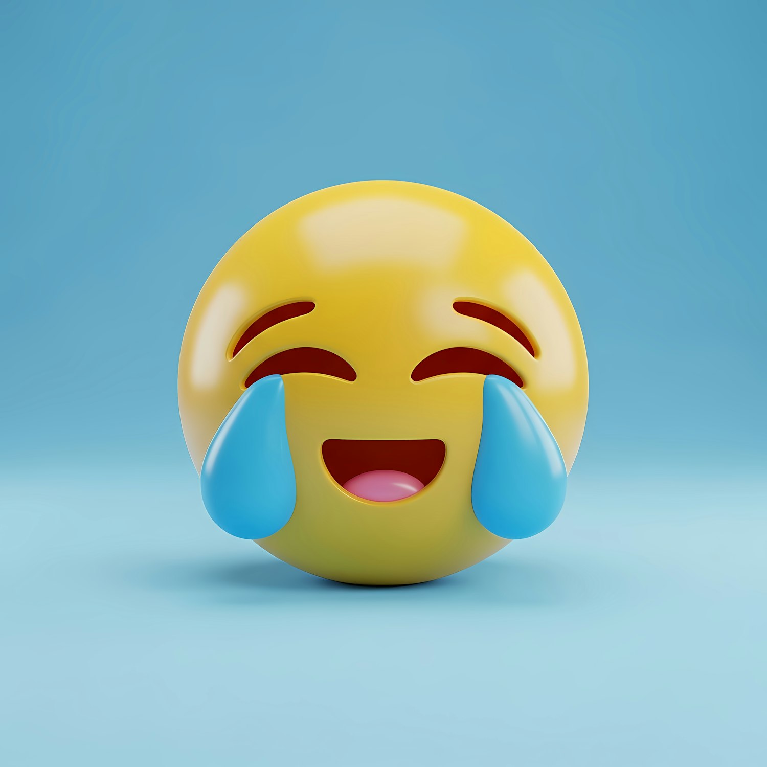 3D-rendered laughing emoji with tears of joy on a light blue background, showcasing a fun and vibrant design.