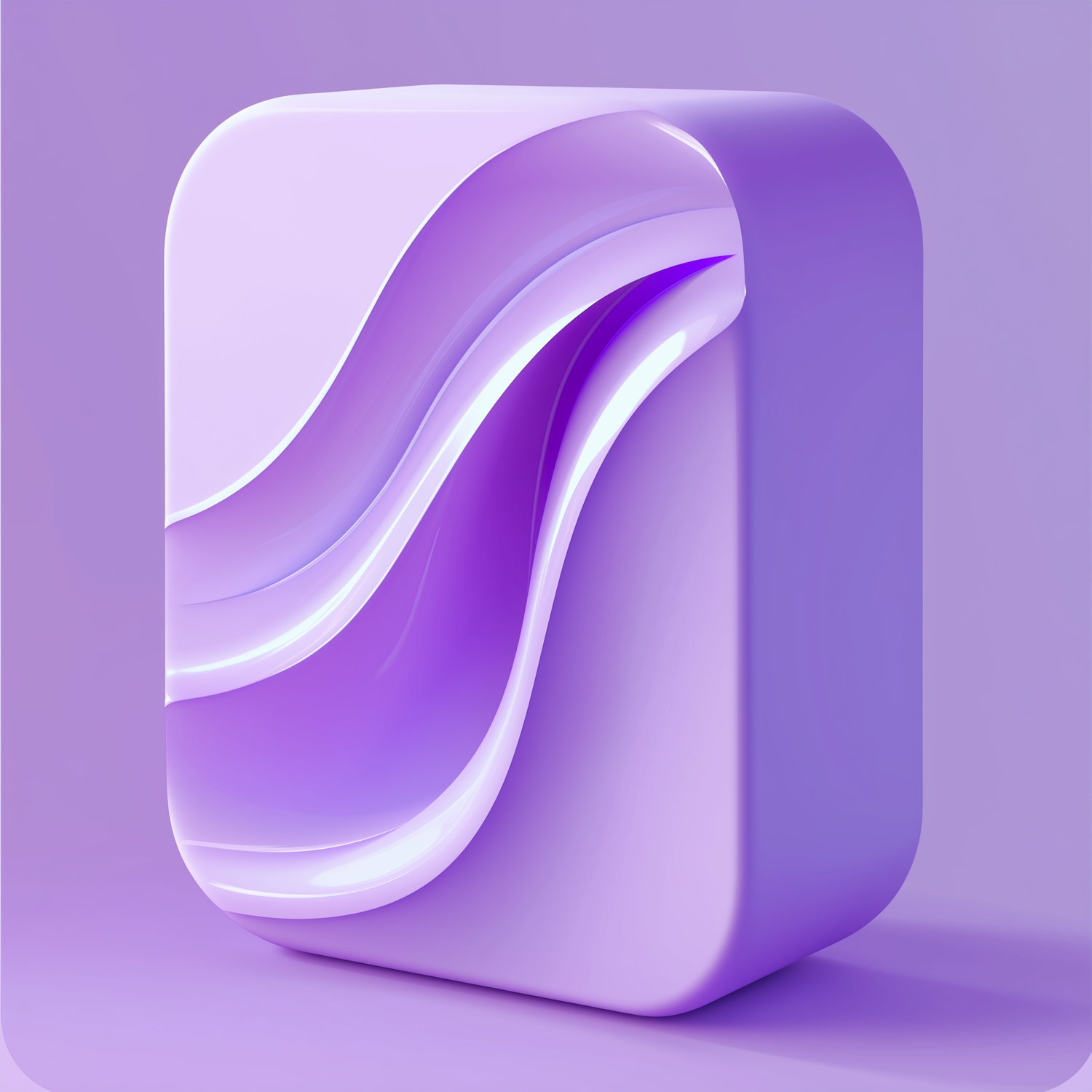 A futuristic 3D lavender block with flowing grooves and glowing purple highlights, set against a soft lavender background.