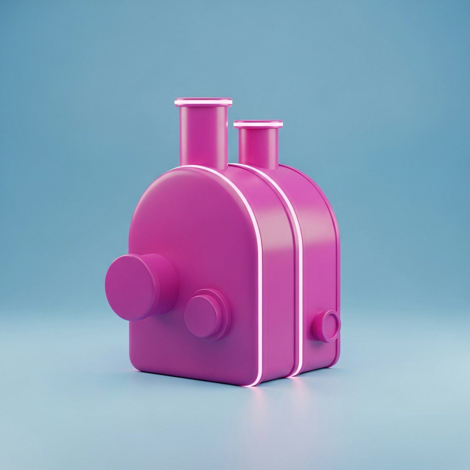 A vibrant magenta 3D object with glowing accents on a light blue background, showcasing a modern and minimalistic design.