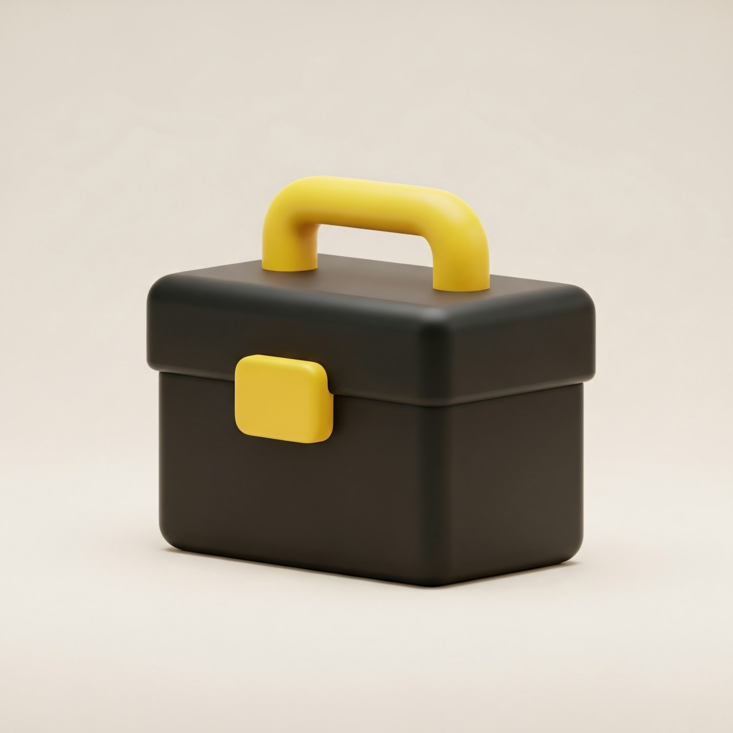 A sleek black box with a yellow handle and latch, designed in a modern 3D style, perfect for creative projects.