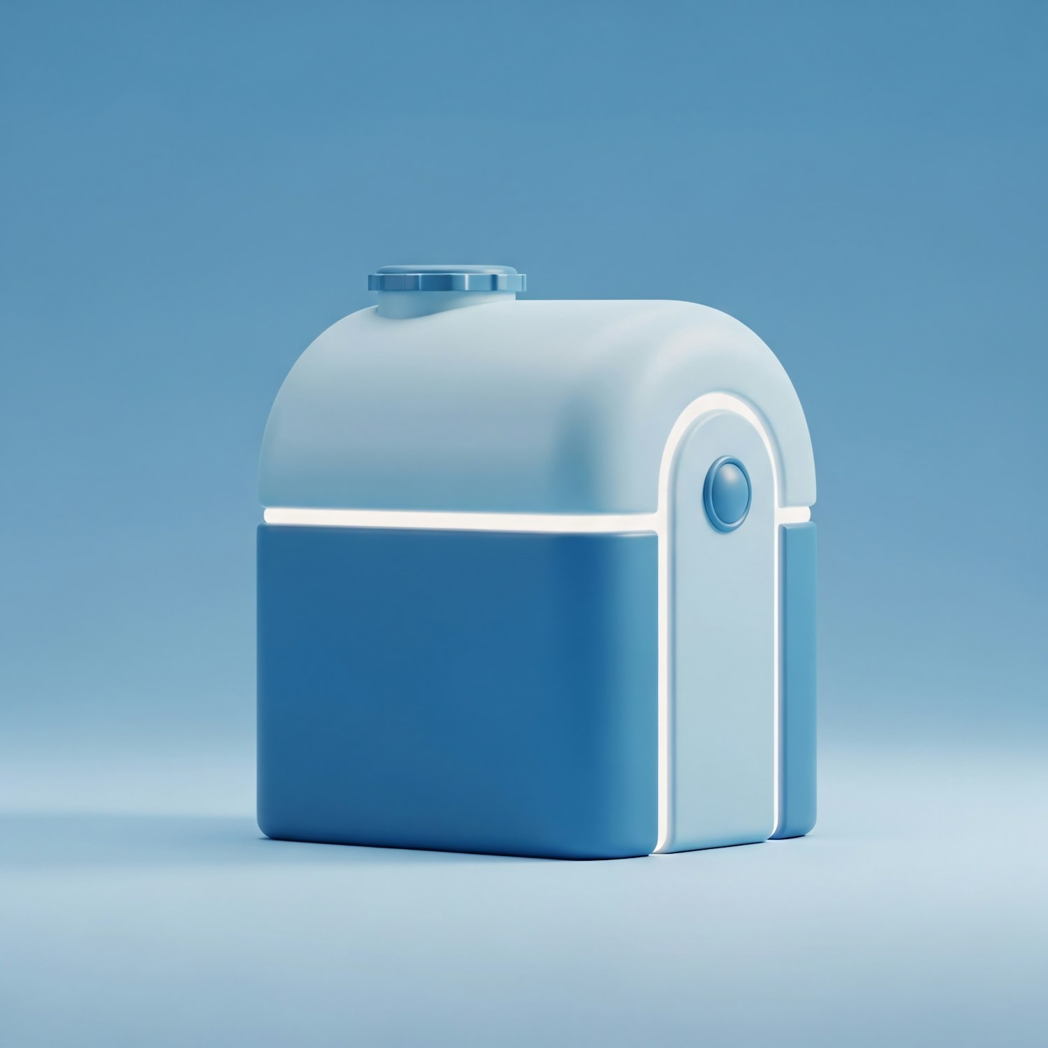 A sleek, modern container with a rounded design and a two-tone blue color scheme, set against a light blue background.