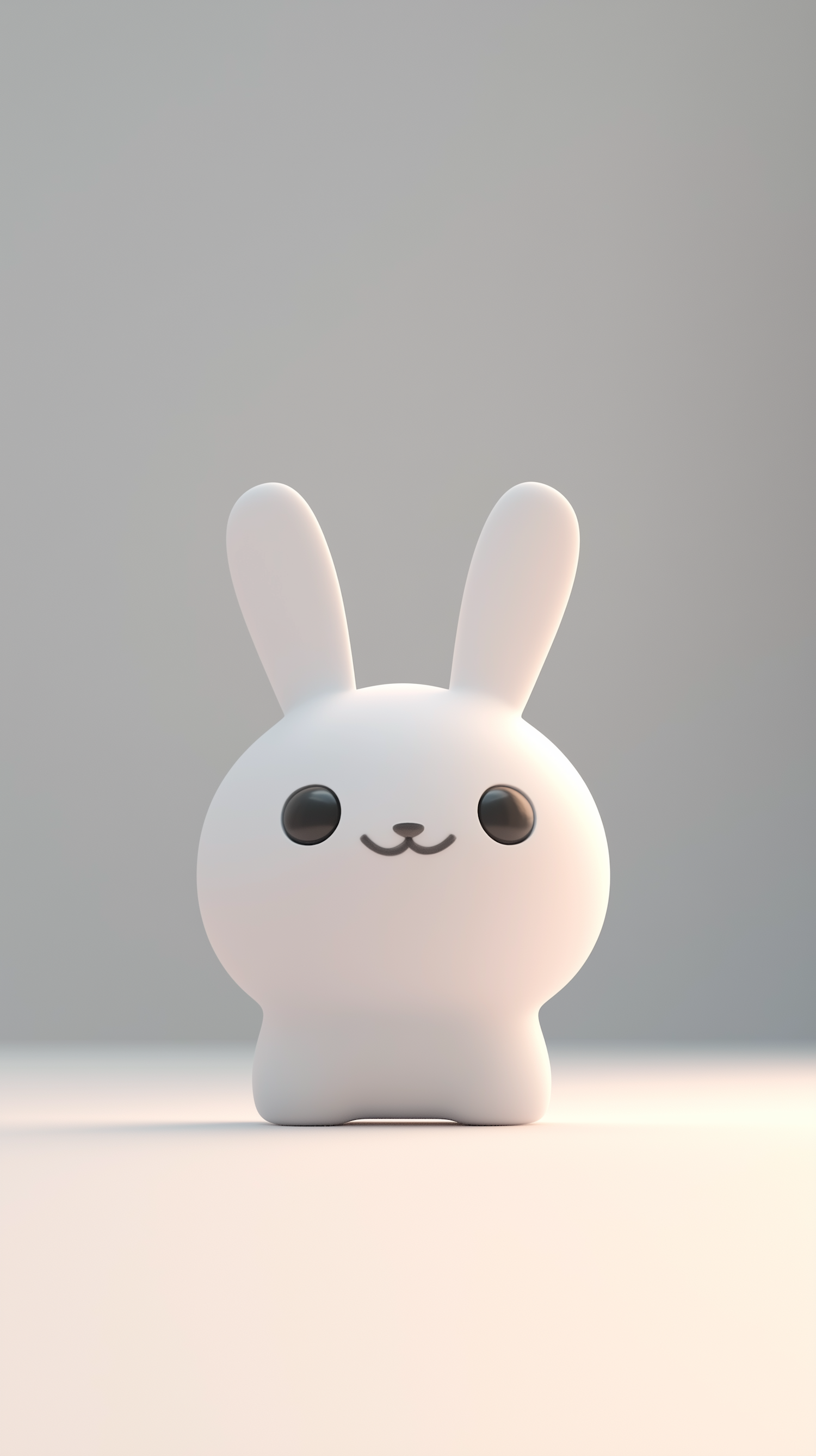 Adorable 3D-rendered white bunny with a minimalist design, glossy texture, and a soft gray background. Perfect for cute and modern aesthetics.