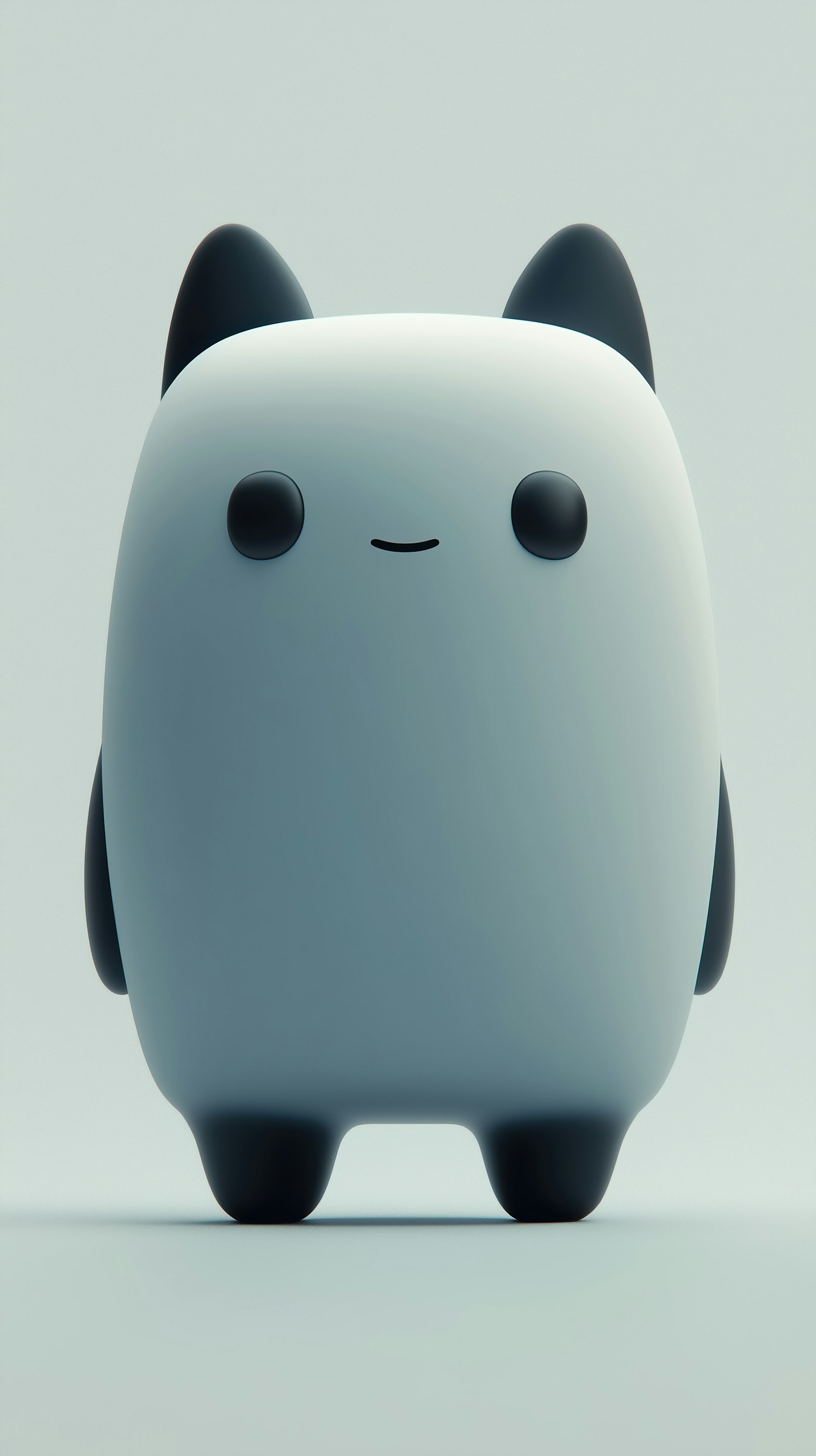 Adorable 3D cat-like character with a rounded body, black ears, and a pastel blue tone. Perfect for minimalist and cute design lovers.