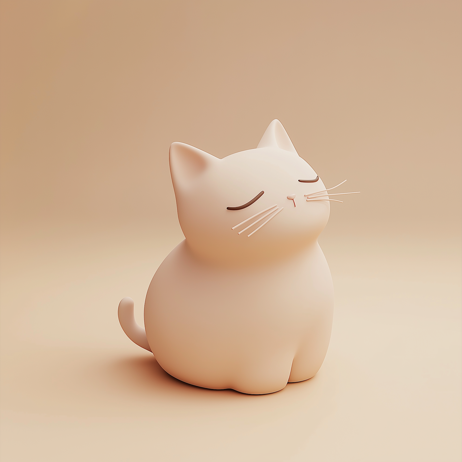 Adorable minimalist 3D cat illustration with a serene expression, soft beige tones, and smooth, rounded design. Perfectly calming vibe.